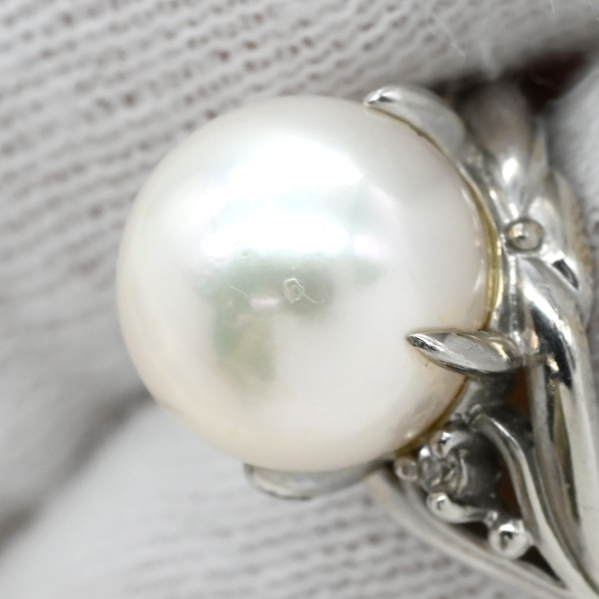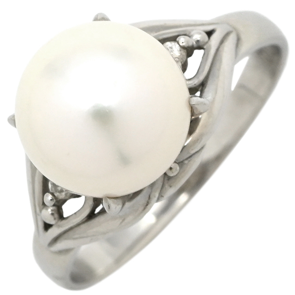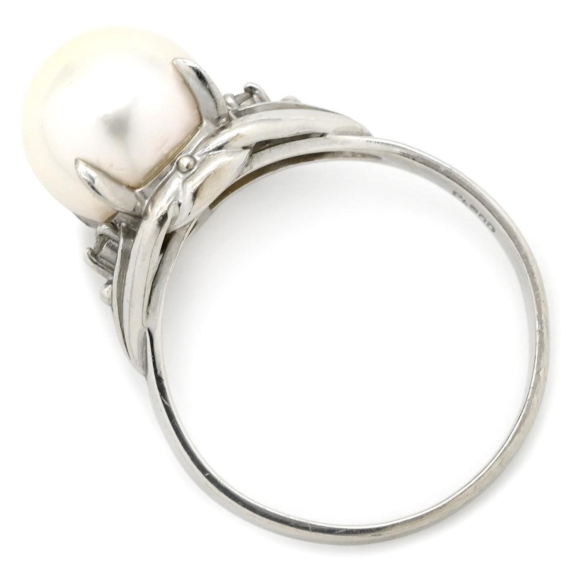 ノンブランド NON BRAND ホワイト×プラチナシルバー Pt900 パール ダイヤモンド リング 指輪 プラチナム 1P 1粒 パール 真珠 あこや アコヤ ダイヤ 11.5号