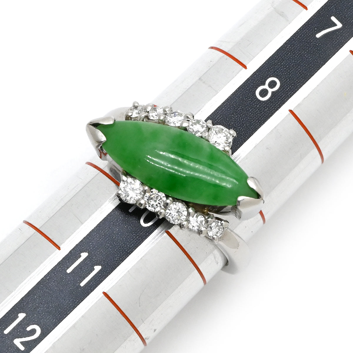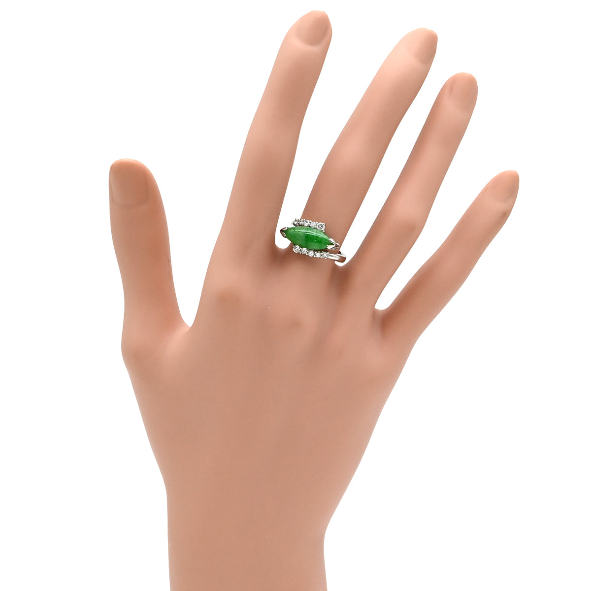 ノンブランド NON BRAND ヒスイ ダイヤリング プラチナシルバー リング 指輪 翡翠 グリーン 9.5号