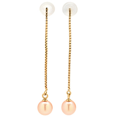 TASAKI TASAKI ロングチェーンパールピアス ピンクパール×イエローゴールド ピアス 淡水 真珠 1P 1粒 Au750 18K 18金 ボックスチェーン