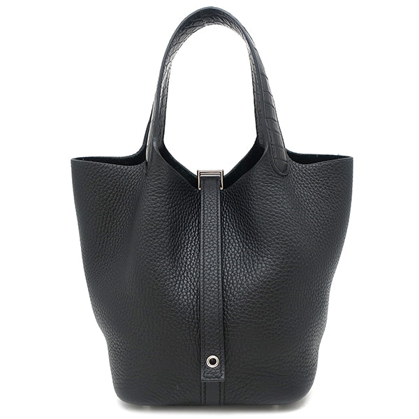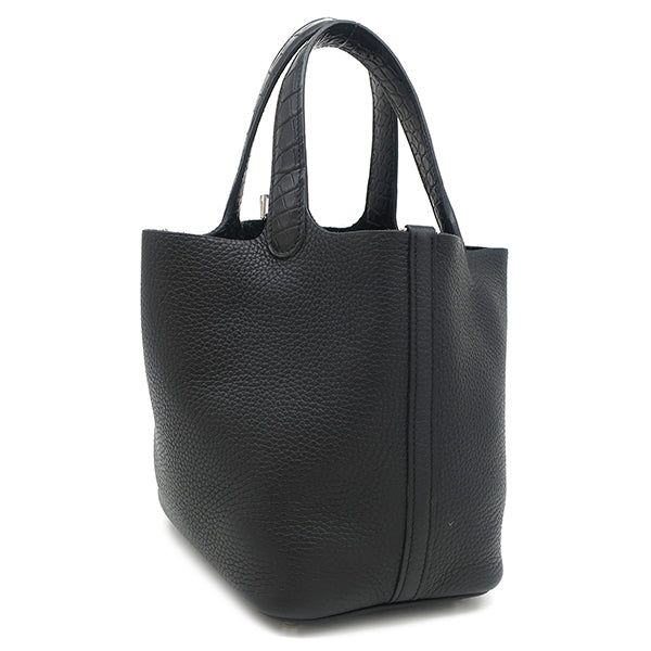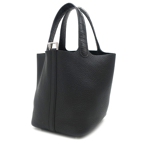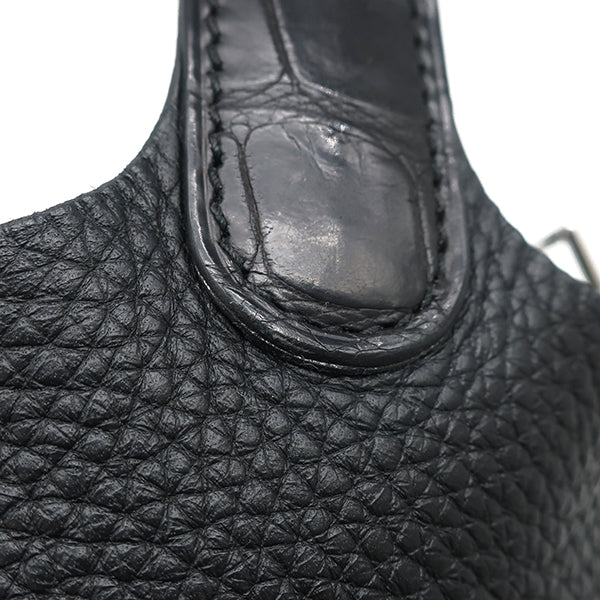 エルメス HERMES ピコタンロック タッチ PM ブラック トリヨンクレマンス アリゲーター ハンドバッグ シルバー金具 黒 クロコ