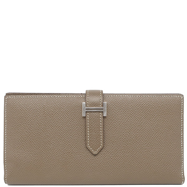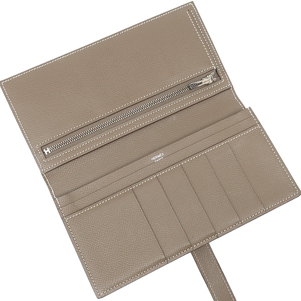 エルメス HERMES ベアンスフレ エトゥープ ヴォーエプソン 長財布 シルバー金具 グレージュ 二つ折り財布