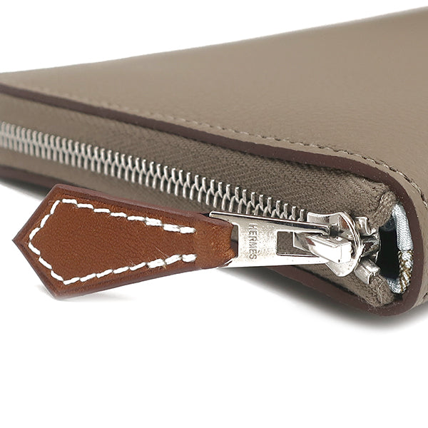 エルメス HERMES アザップロング シルクイン エトゥープ エバーカラー 長財布 シルバー金具 新品 未使用 グレージュ ラウンドファスナー