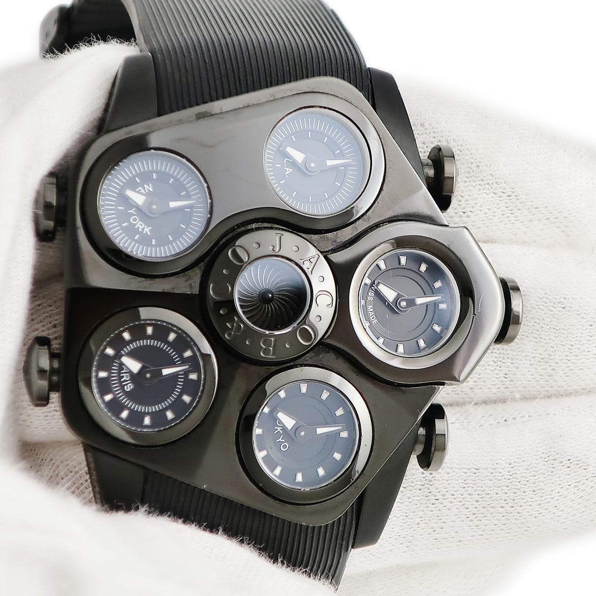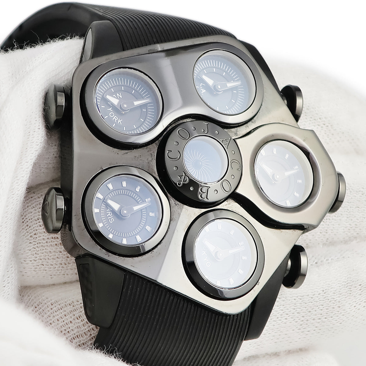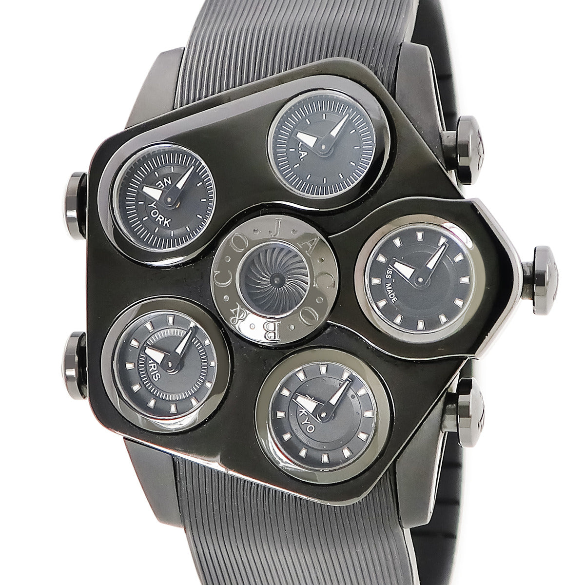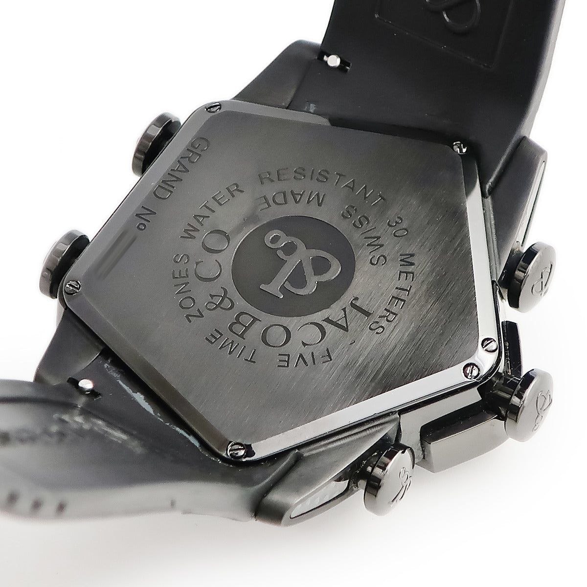 ジェイコブ JACOB グランド JC-GR5-18 クオーツ メンズ PVD加工SS 五角形 ジェット機タービンエンジン 黒 GMT