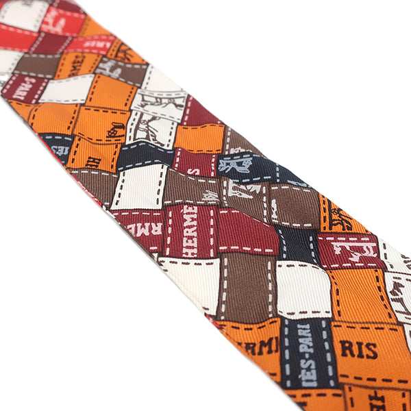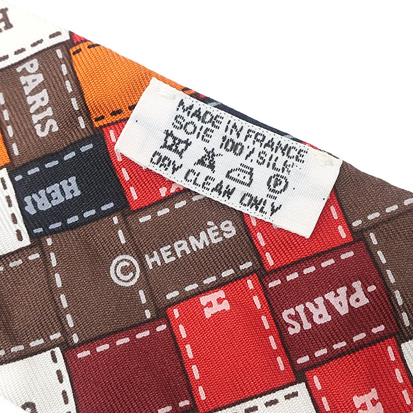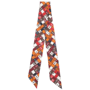 エルメス HERMES ツイリー オレンジ×ブルン×ブラック シルク スカーフ 【BOLDUC AU CARRE/ボルデュック チェック】