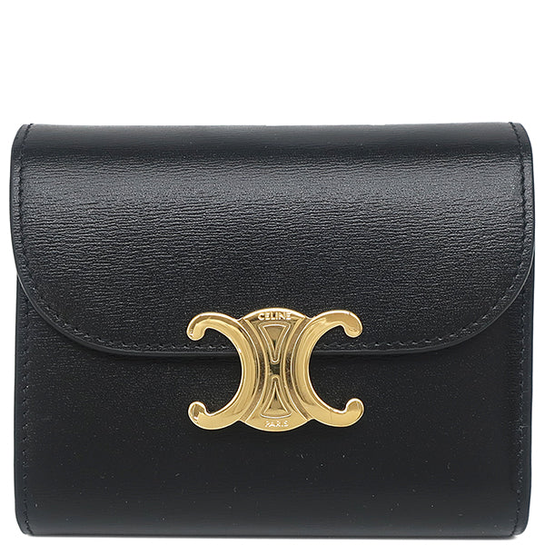 セリーヌ CELINE スモール フラップウォレット トリオンフ 10D783DPV38NO ブラック カーフ 三つ折り財布 ゴールド金具 黒
