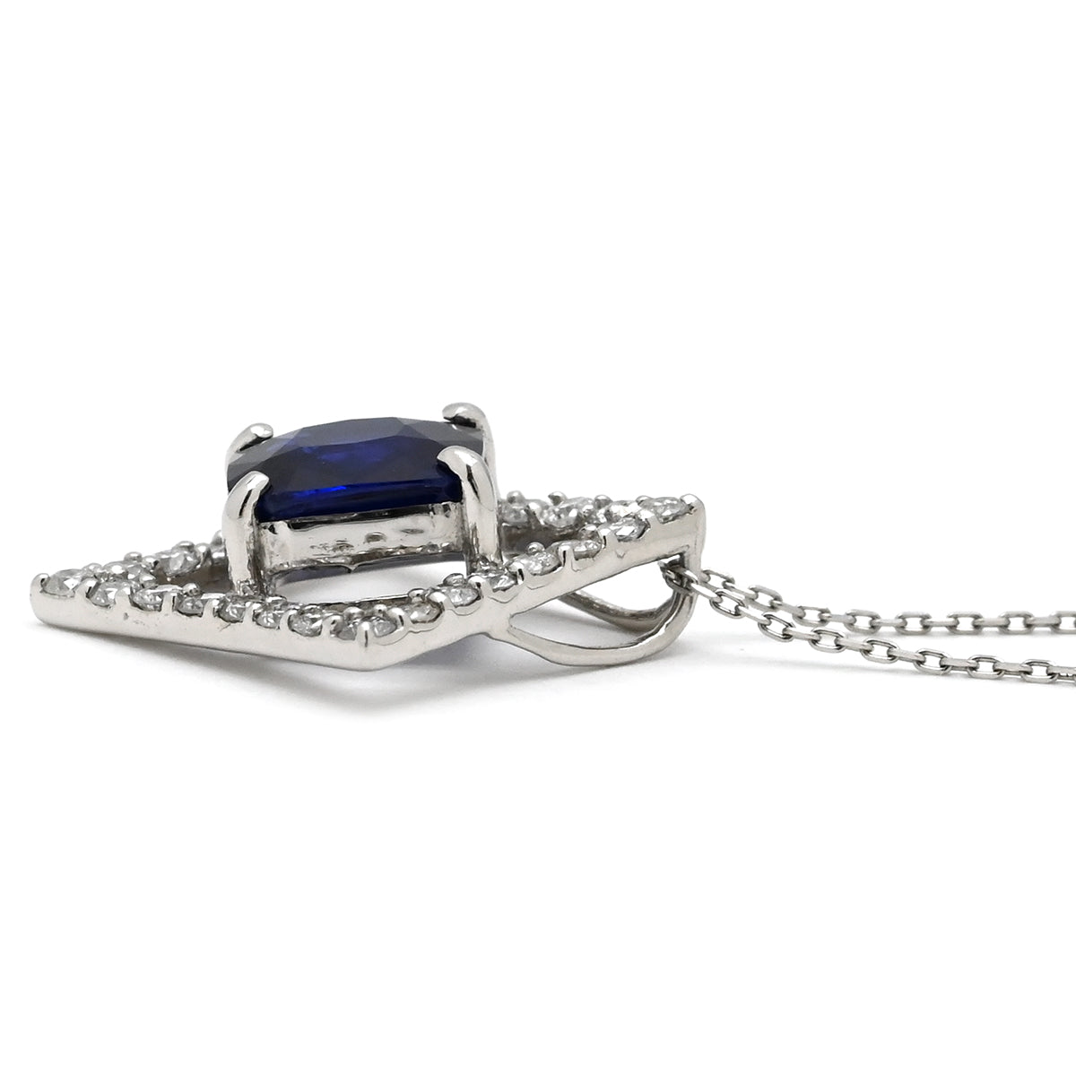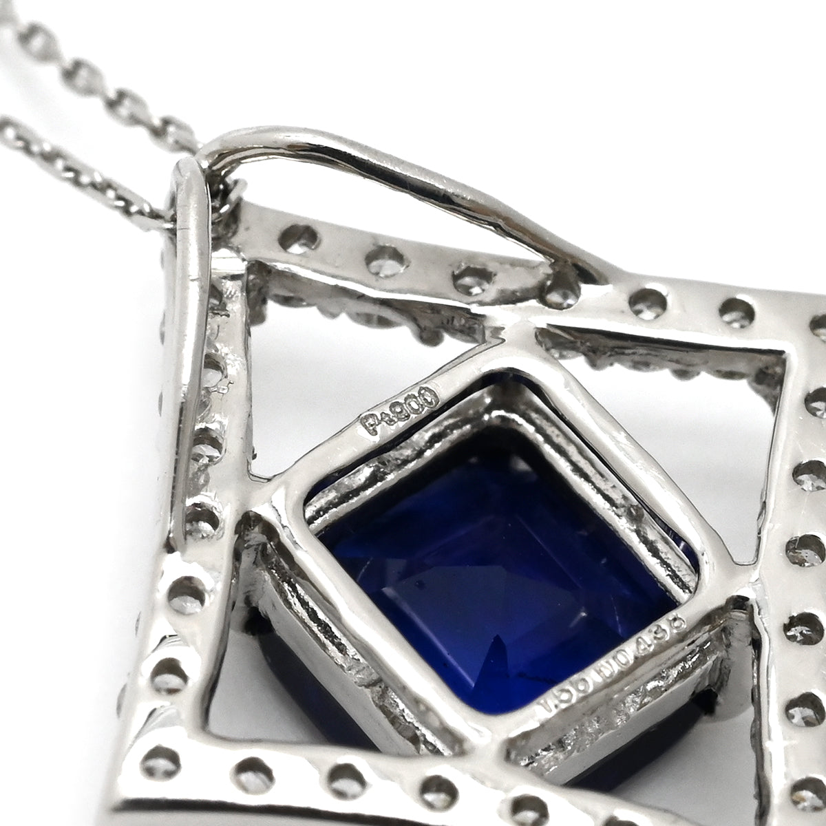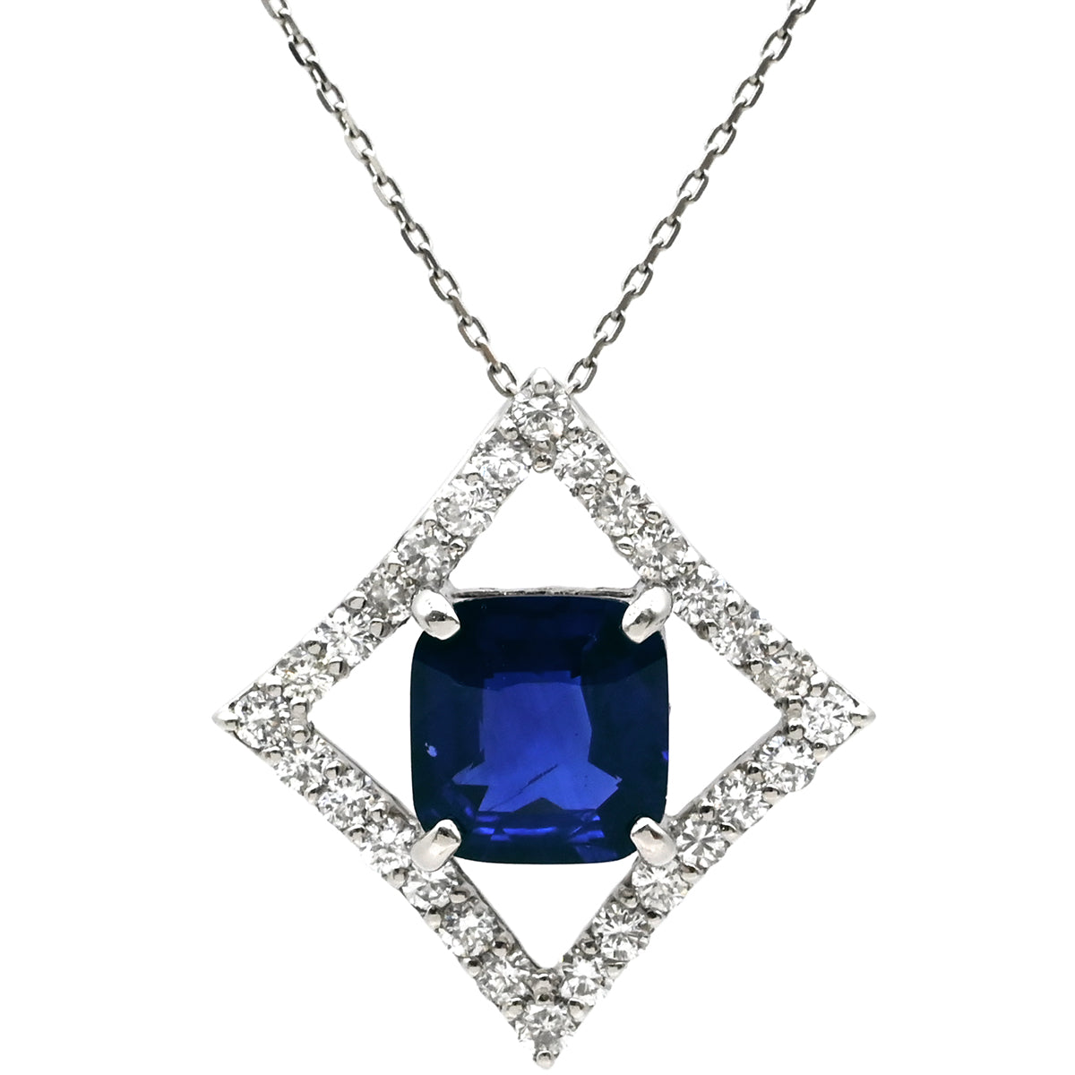 ノンブランド NON BRAND サファイア ダイヤペンダント プラチナシルバー ネックレス 青 ブルー