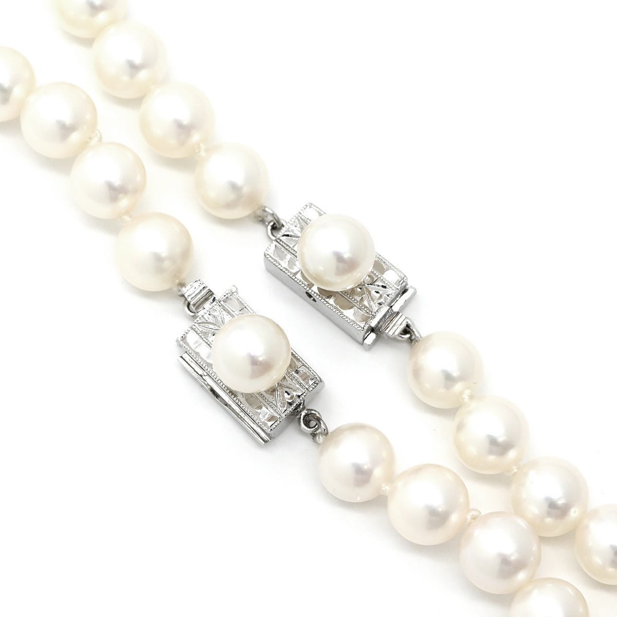 ノンブランド NON BRAND パール2連ネックレス パールホワイト×ホワイトゴールド ネックレス アコヤパール ホワイト 真珠