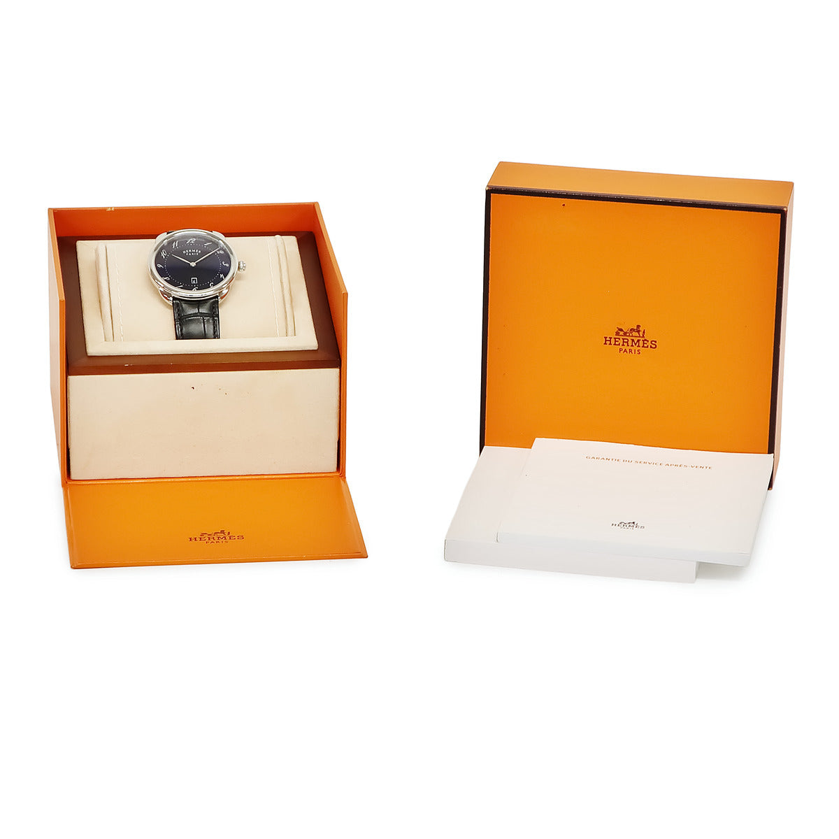 エルメス HERMES アルソー GM AR7Q.810 クオーツ メンズ ブルー アラビア ラウンド デイト
