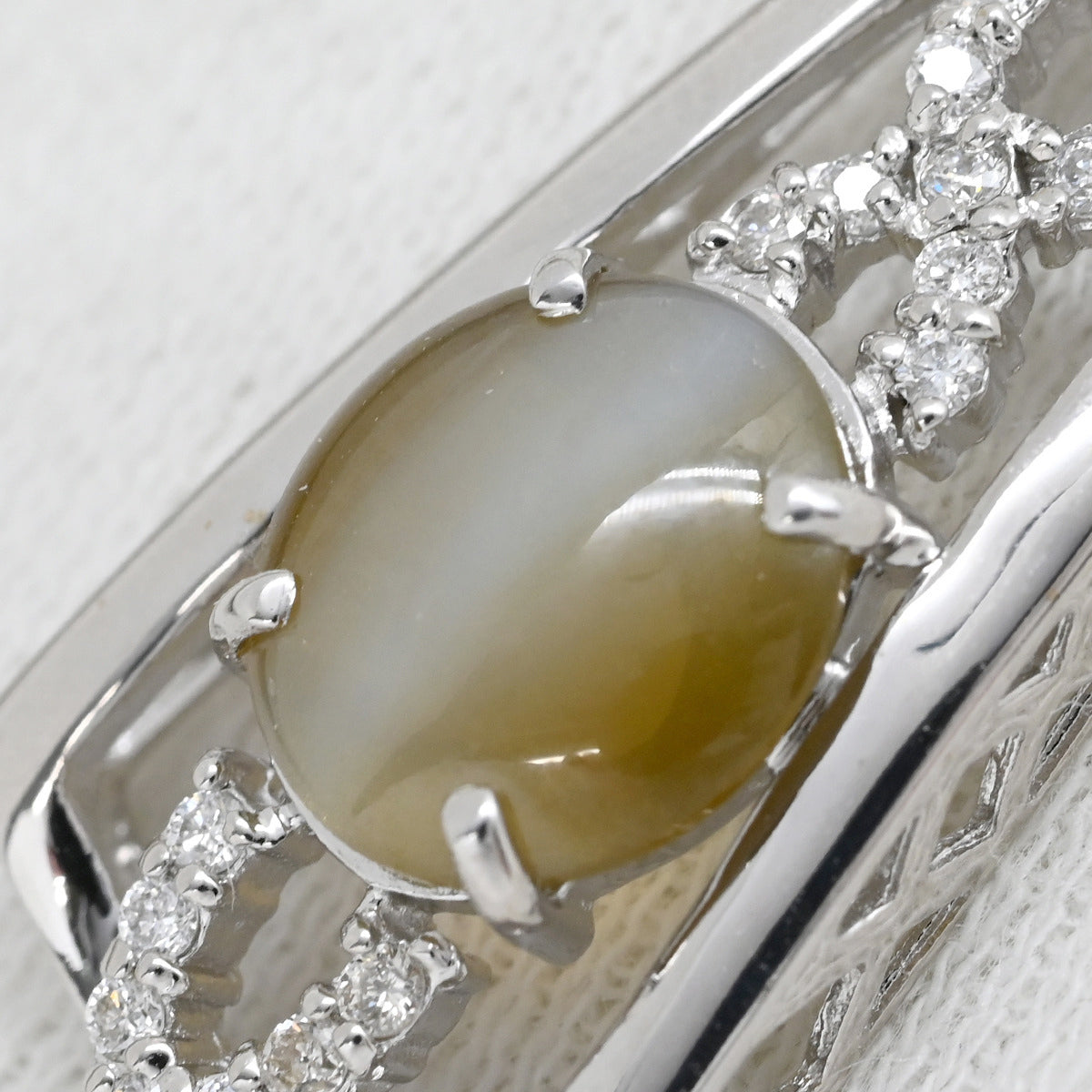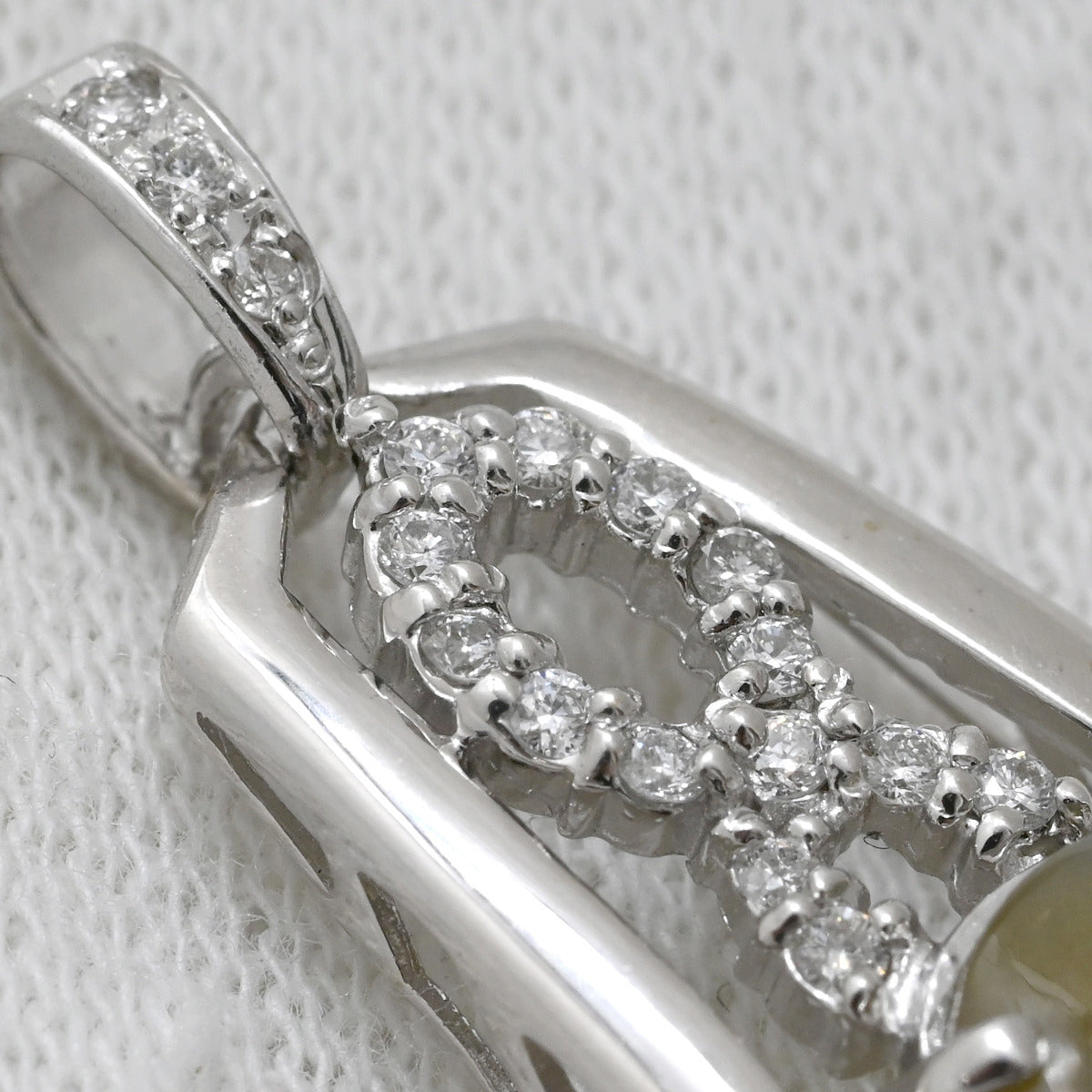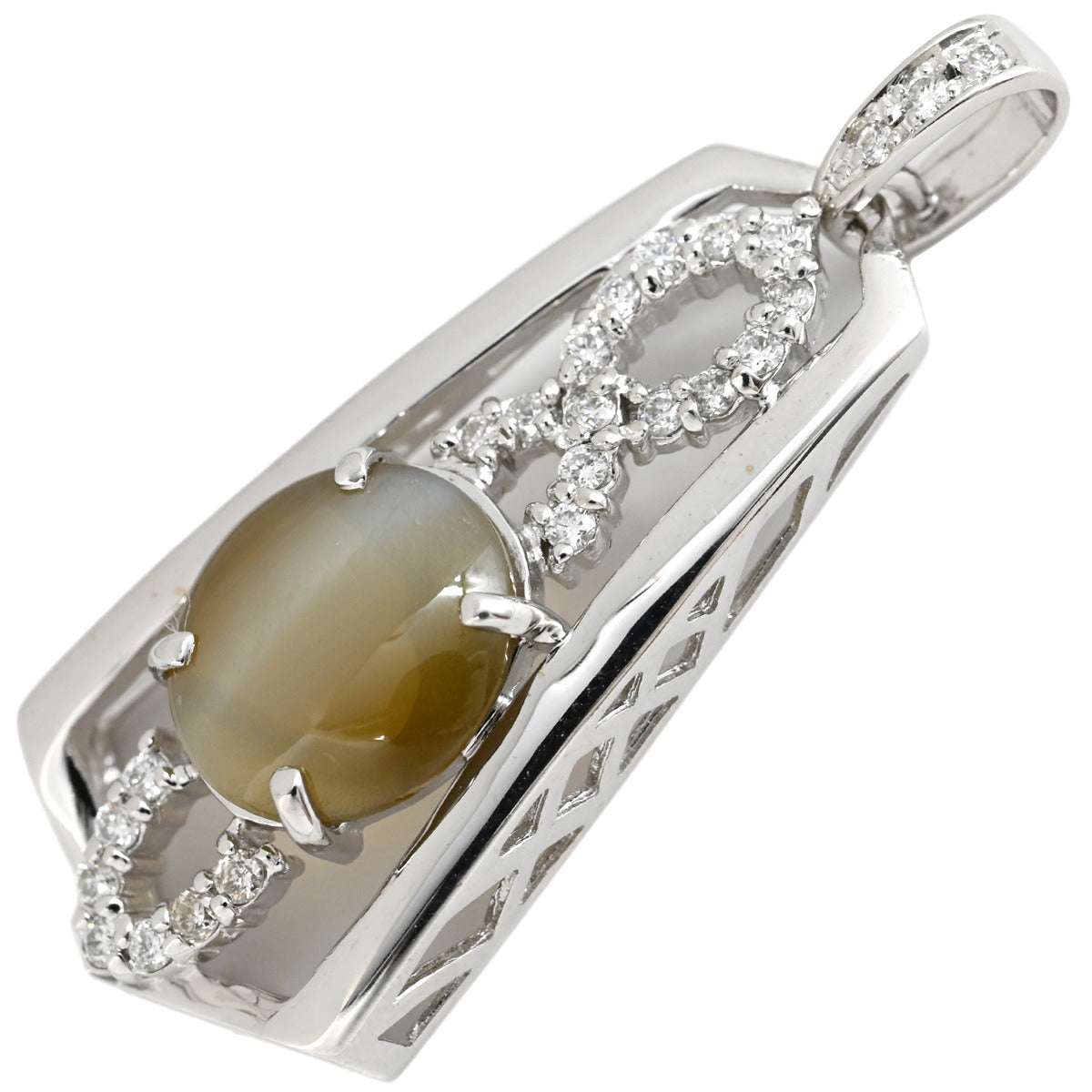 ノンブランド NON BRAND クリソベリル キャッツアイ ダイヤ ホワイトゴールド ペンダントトップ 18K 18金 ネックレストップ 天然石 オーバル 猫目石