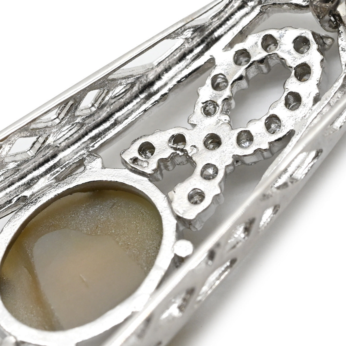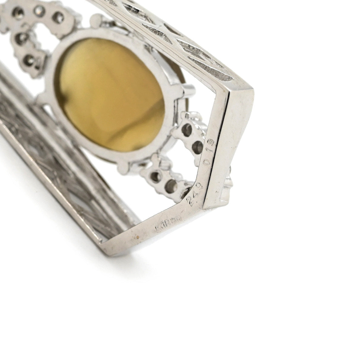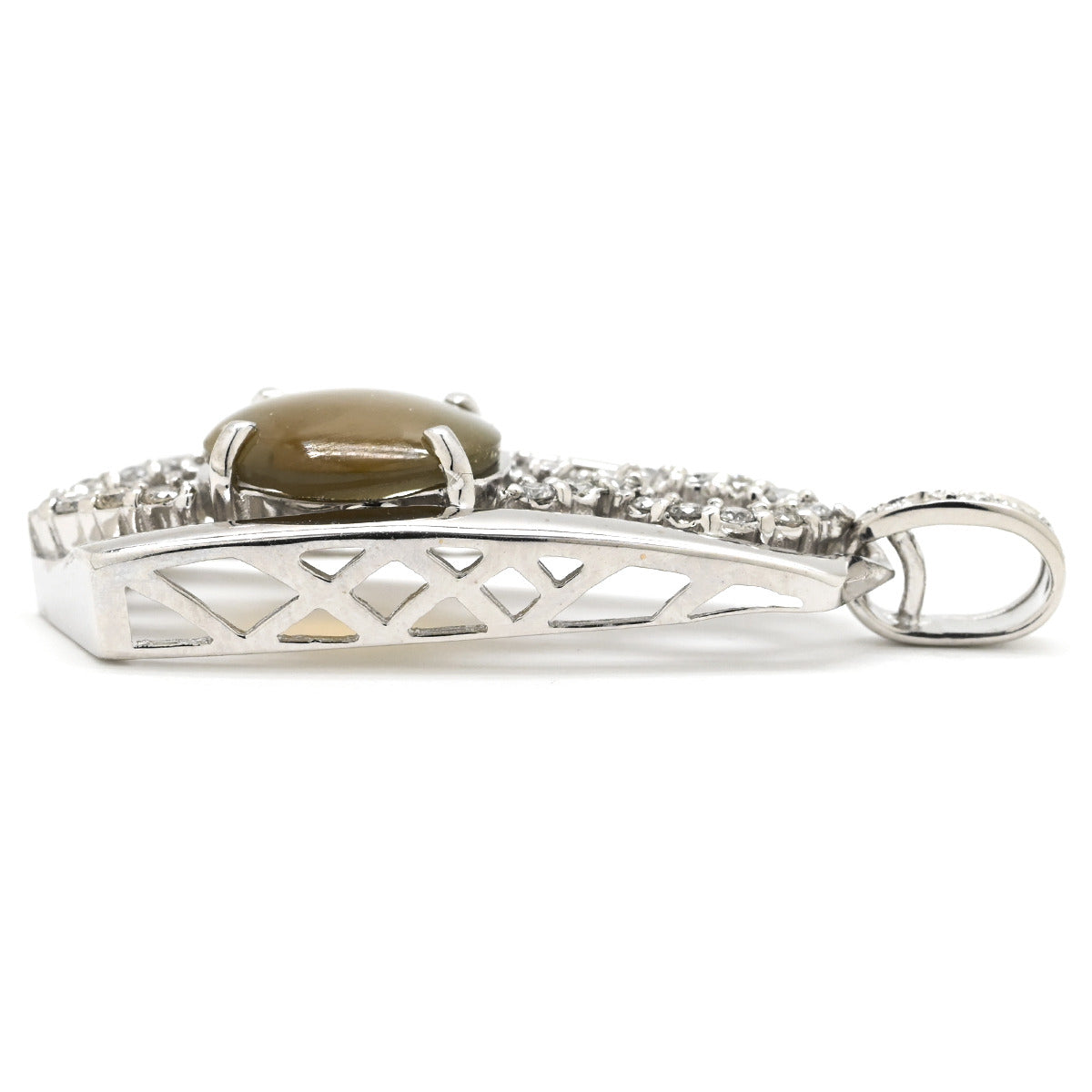ノンブランド NON BRAND クリソベリル キャッツアイ ダイヤ ホワイトゴールド ペンダントトップ 18K 18金 ネックレストップ 天然石 オーバル 猫目石