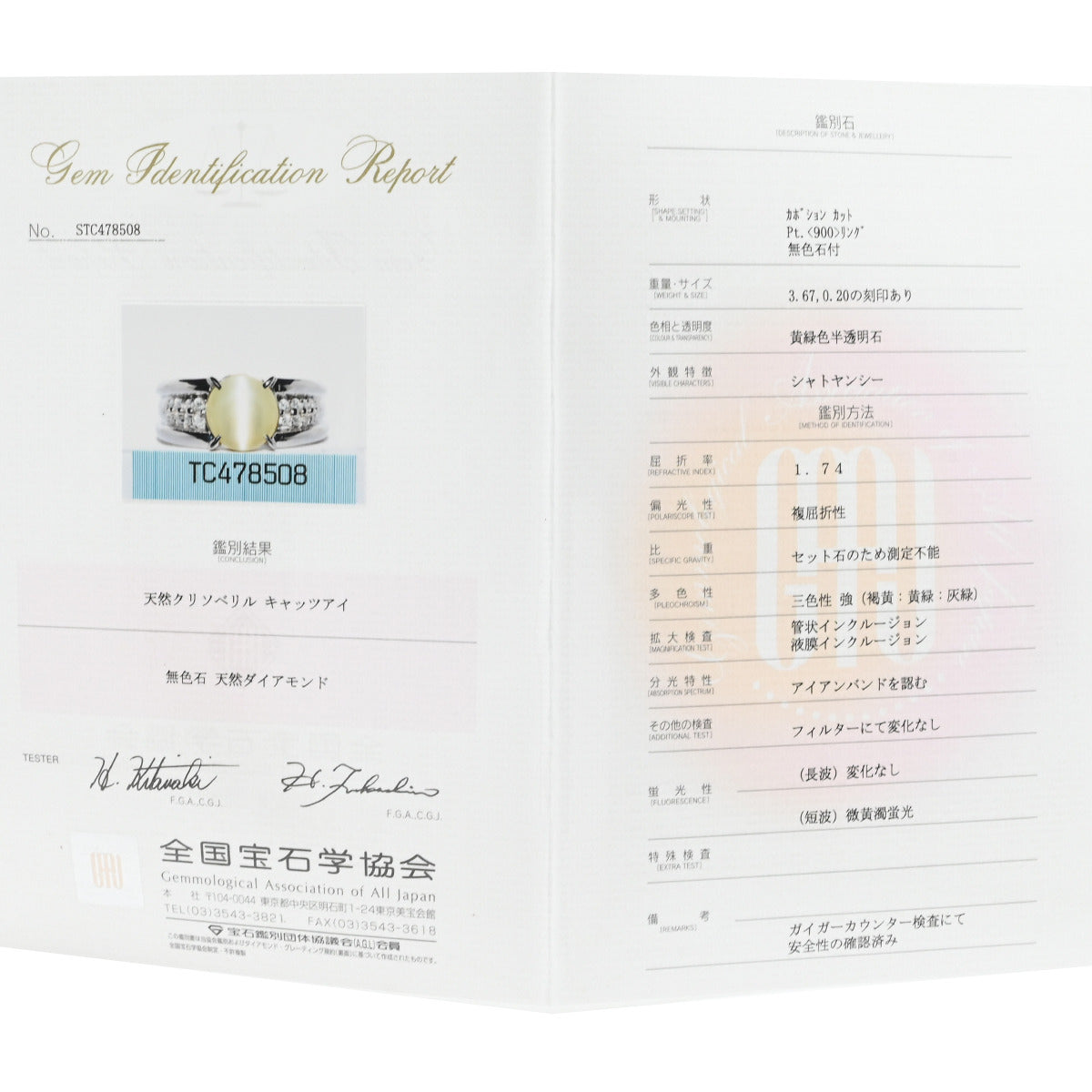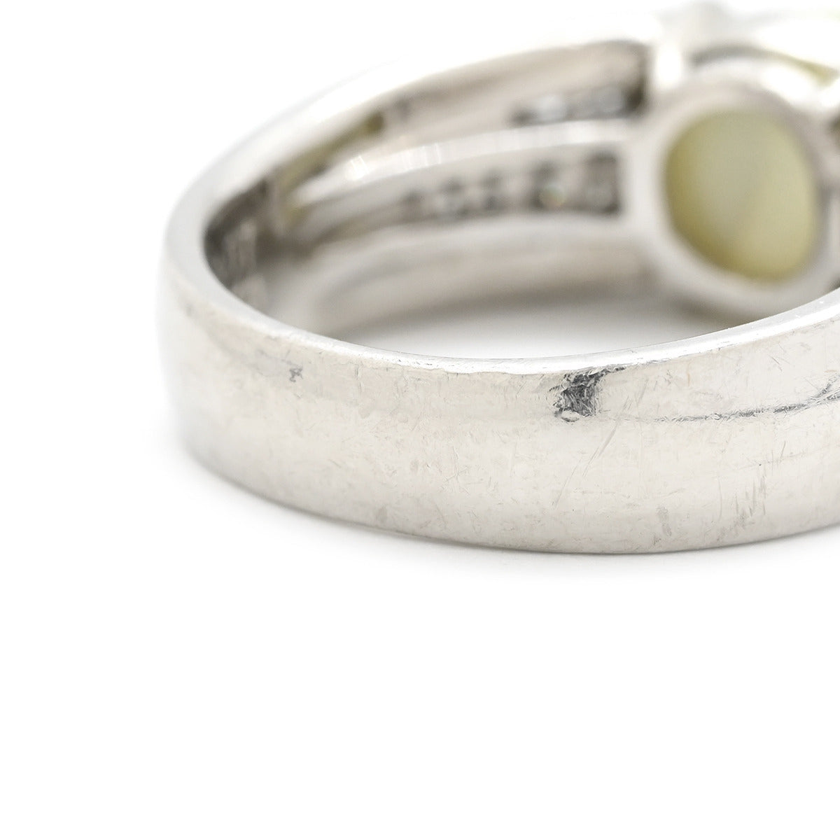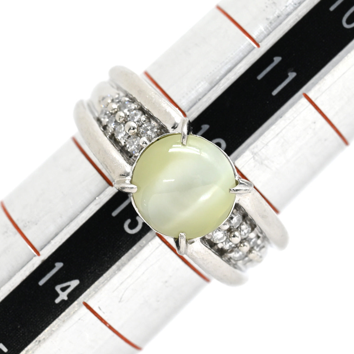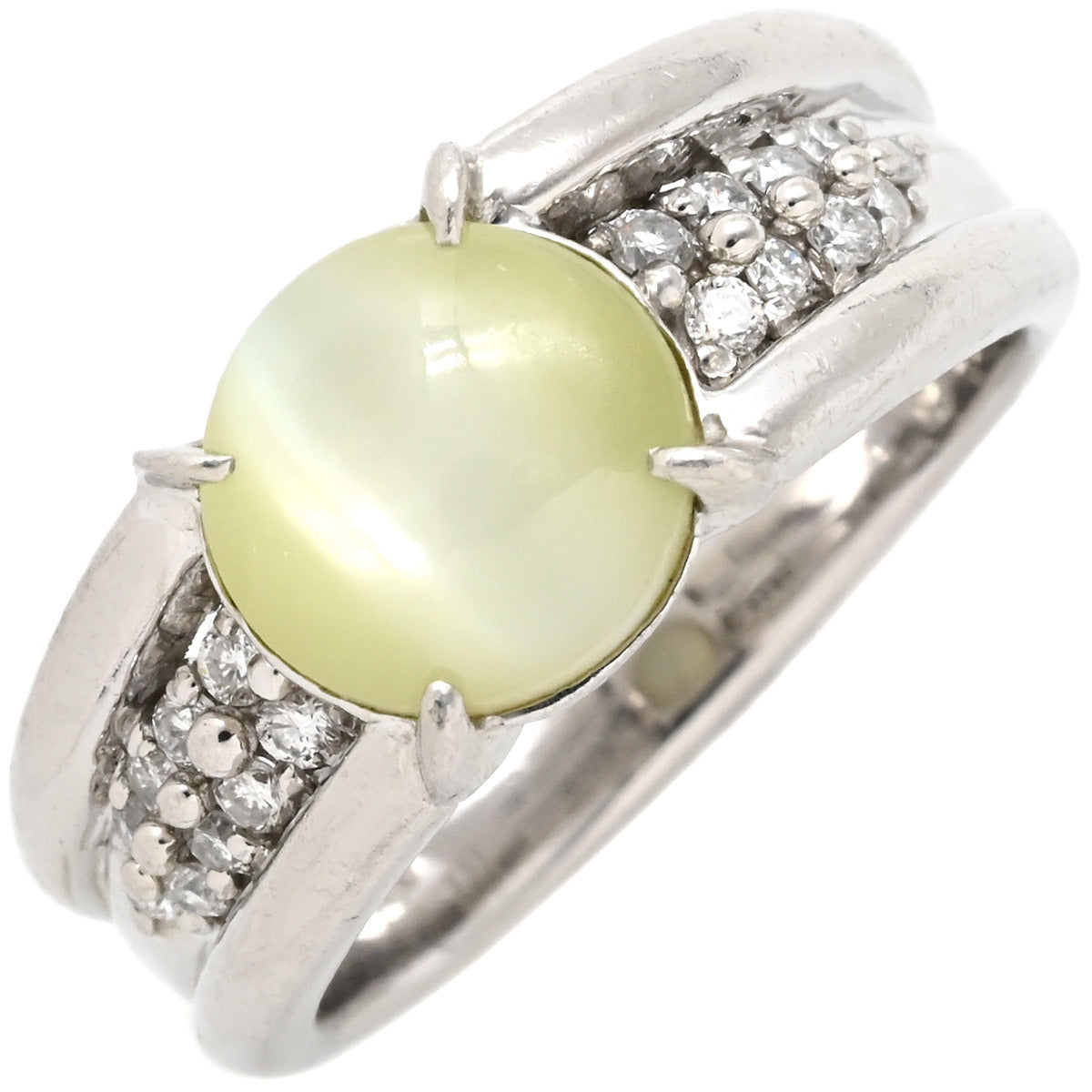 ノンブランド NON BRAND キャッツアイ ダイヤリング プラチナシルバー Pt900 クリソベリルキャッツアイ ダイヤモンド リング 指輪 猫目石 シャトヤンシー 12.5号