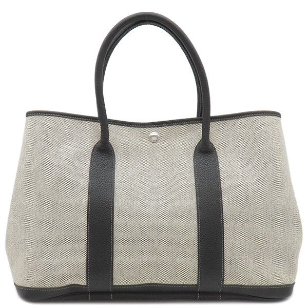 エルメス HERMES ガーデンパーティーPM ボルデュック グレー×ブラック トワルアッシュ ネゴンダ トートバッグ シルバー金具 黒 ボルデュックリボン トワルH