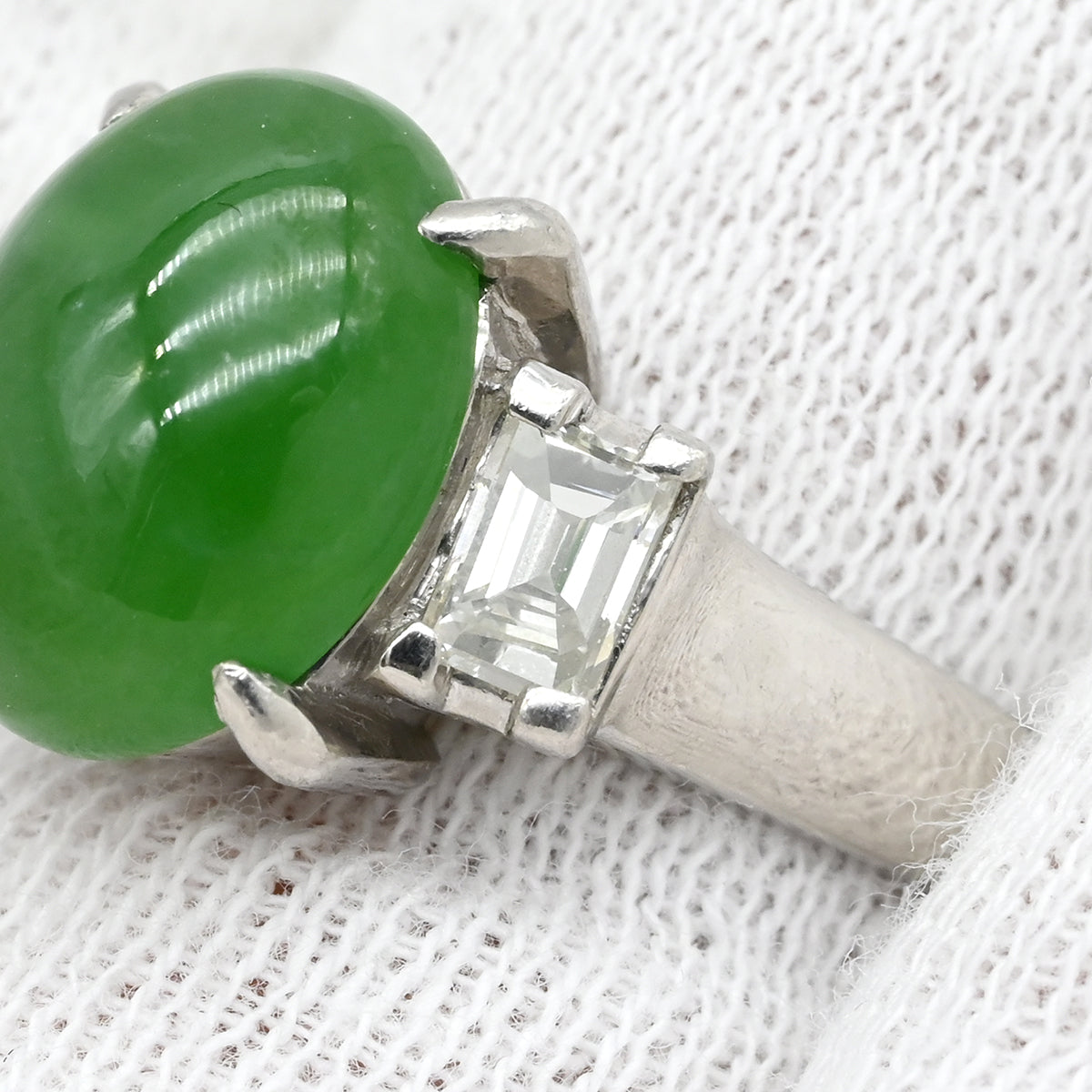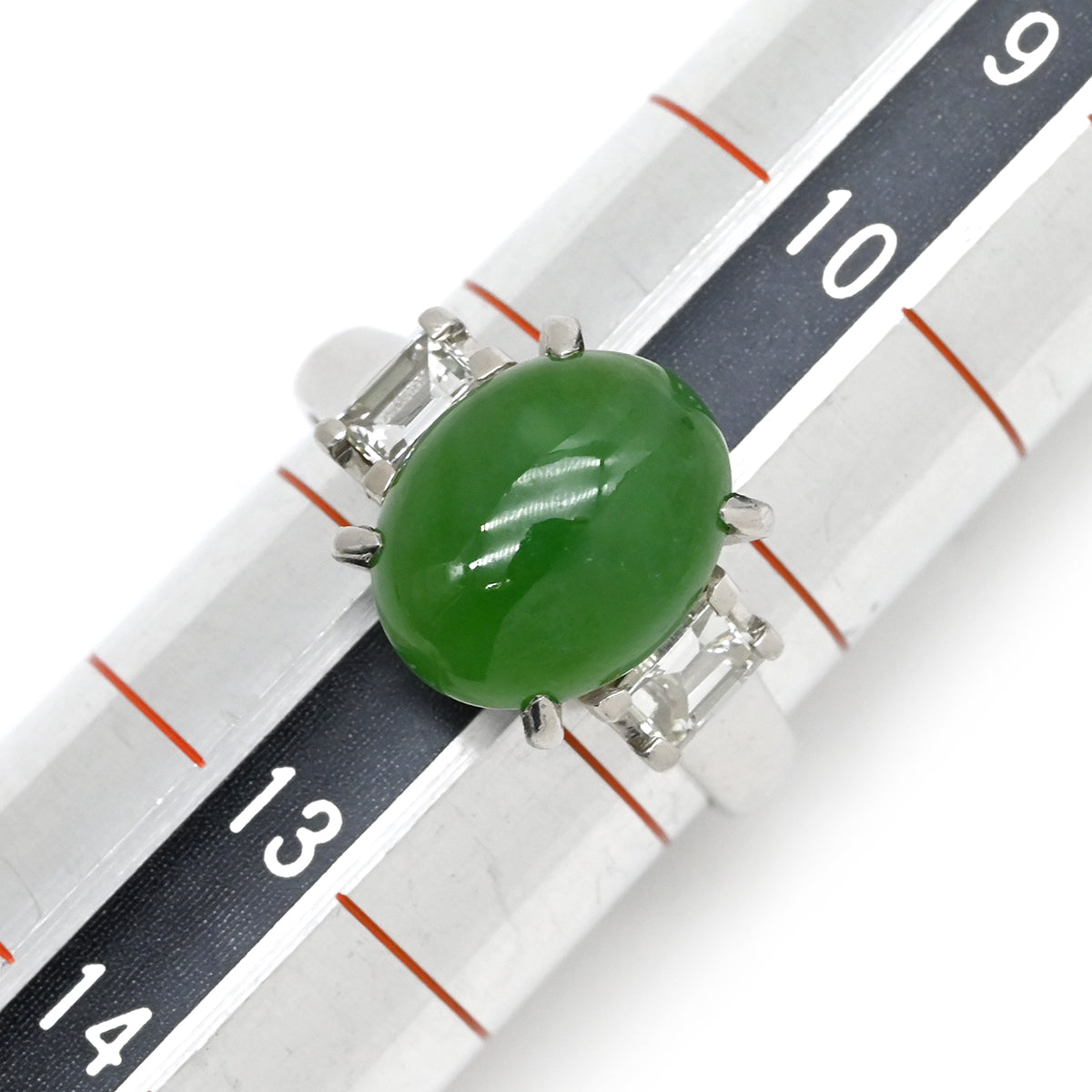 ノンブランド NON BRAND ヒスイ ダイヤリング プラチナシルバー リング 指輪 翡翠 グリーン 11.5号