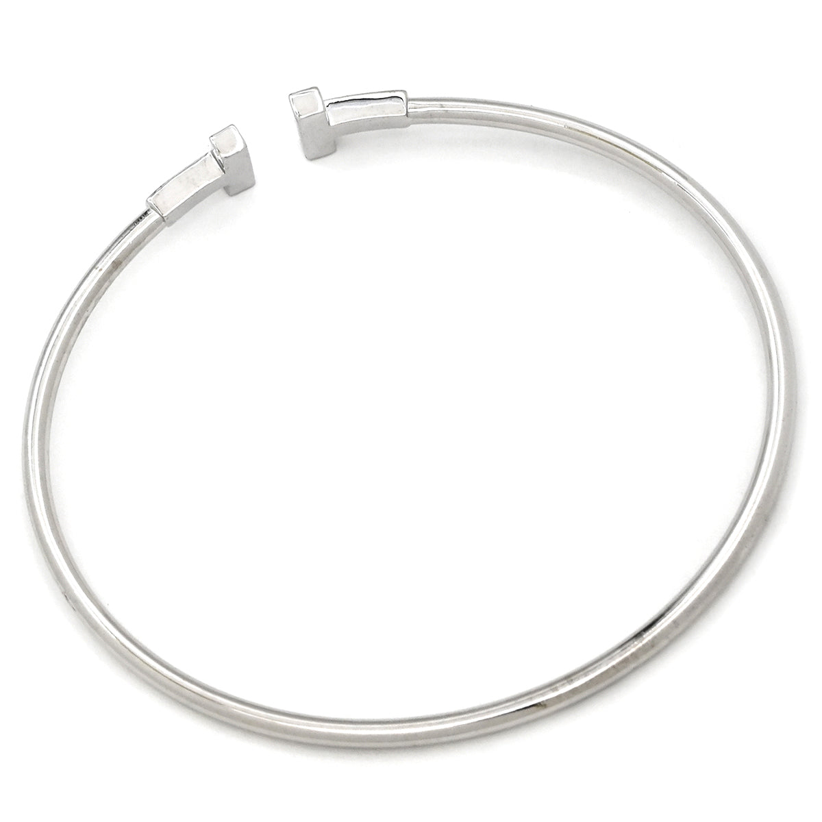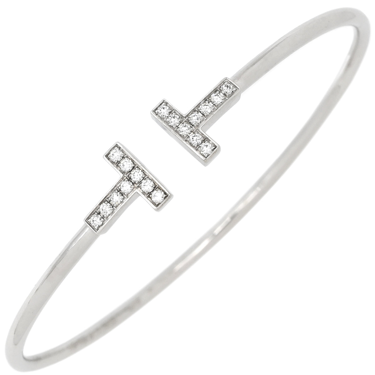ティファニー Tiffany & Co Tワイヤー ホワイトゴールド×シルバー ブレスレット T&Co. Au750 18K バングル T字型