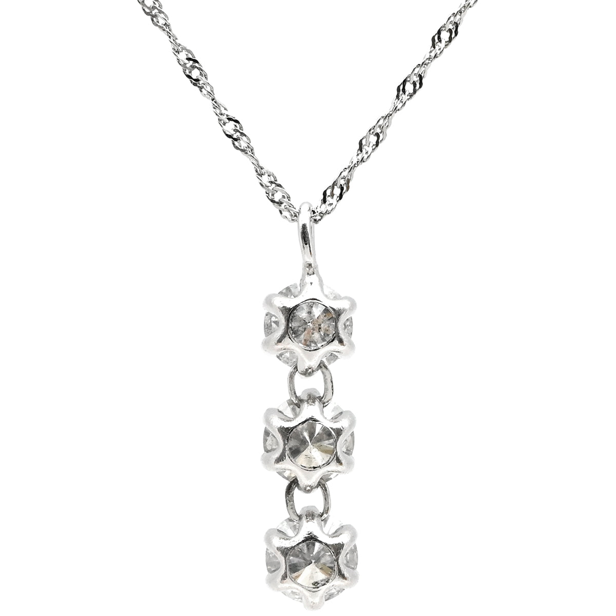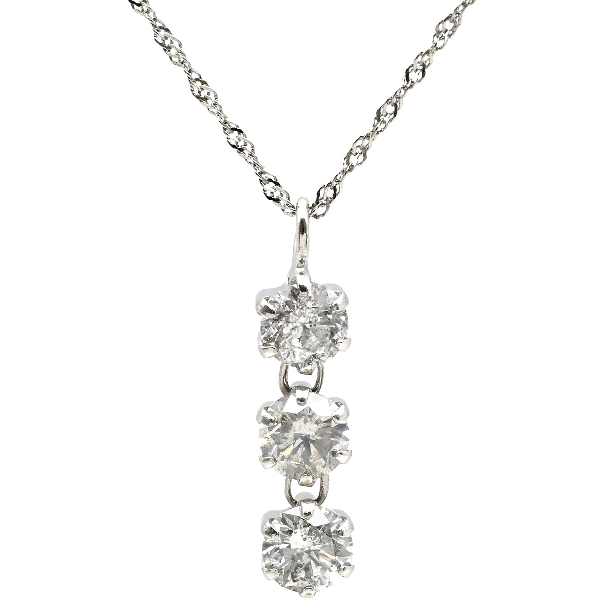 ノンブランド NON BRAND ダイヤペンダント プラチナシルバー Pt900 ダイヤモンド Pt850(チェーン) ネックレス 3石 3連 ドロップ