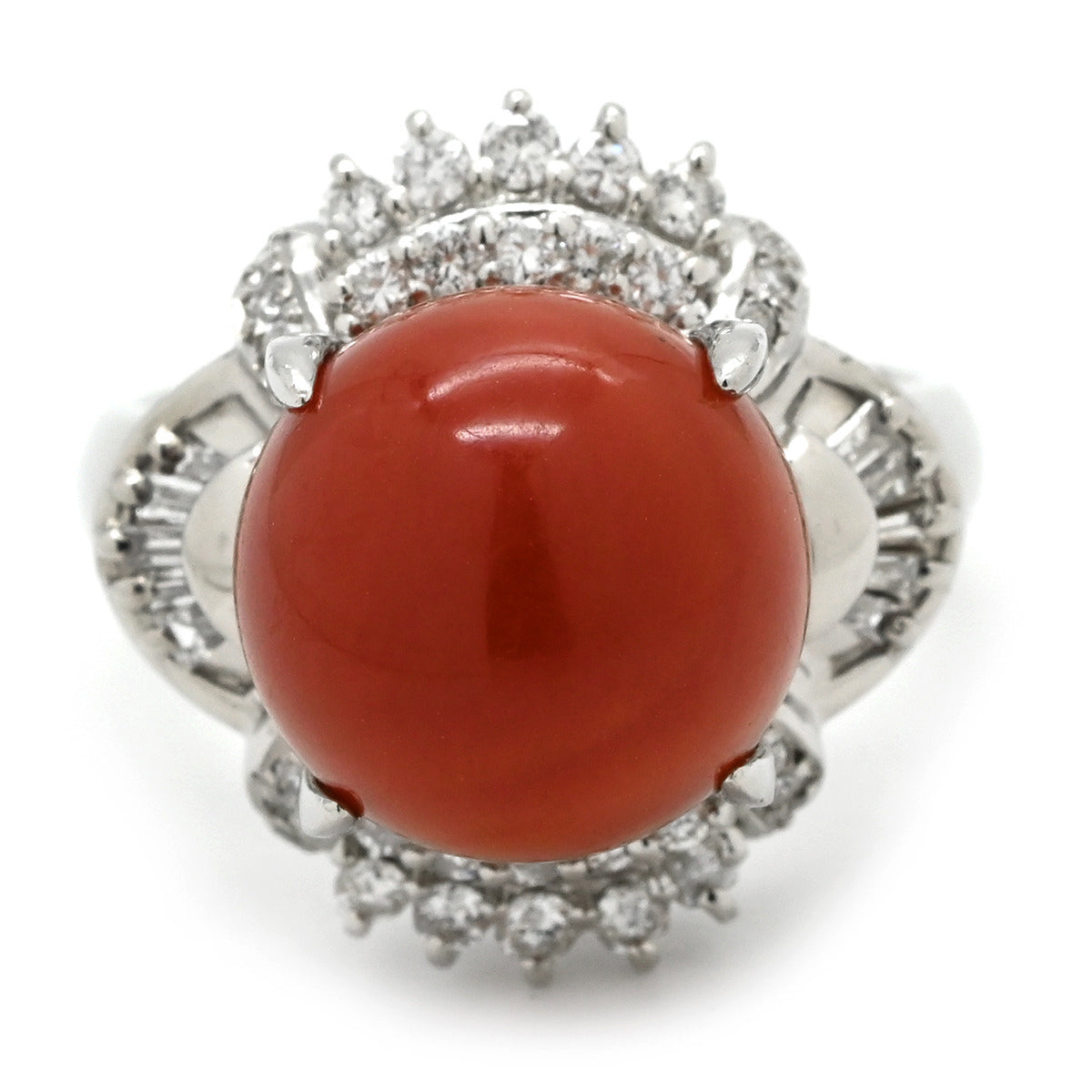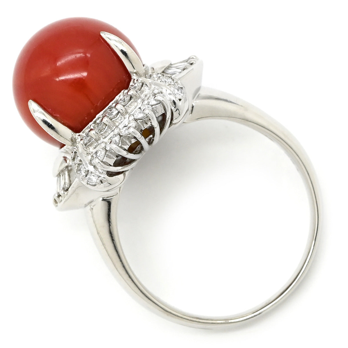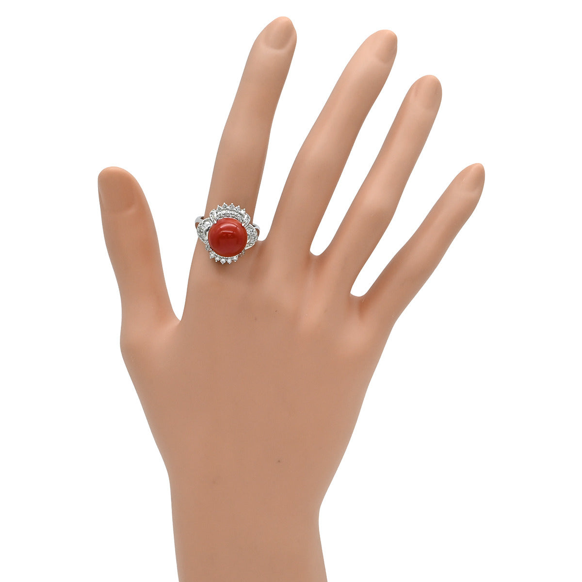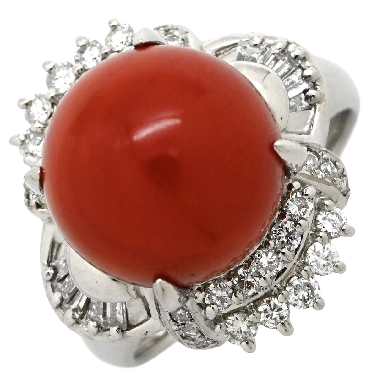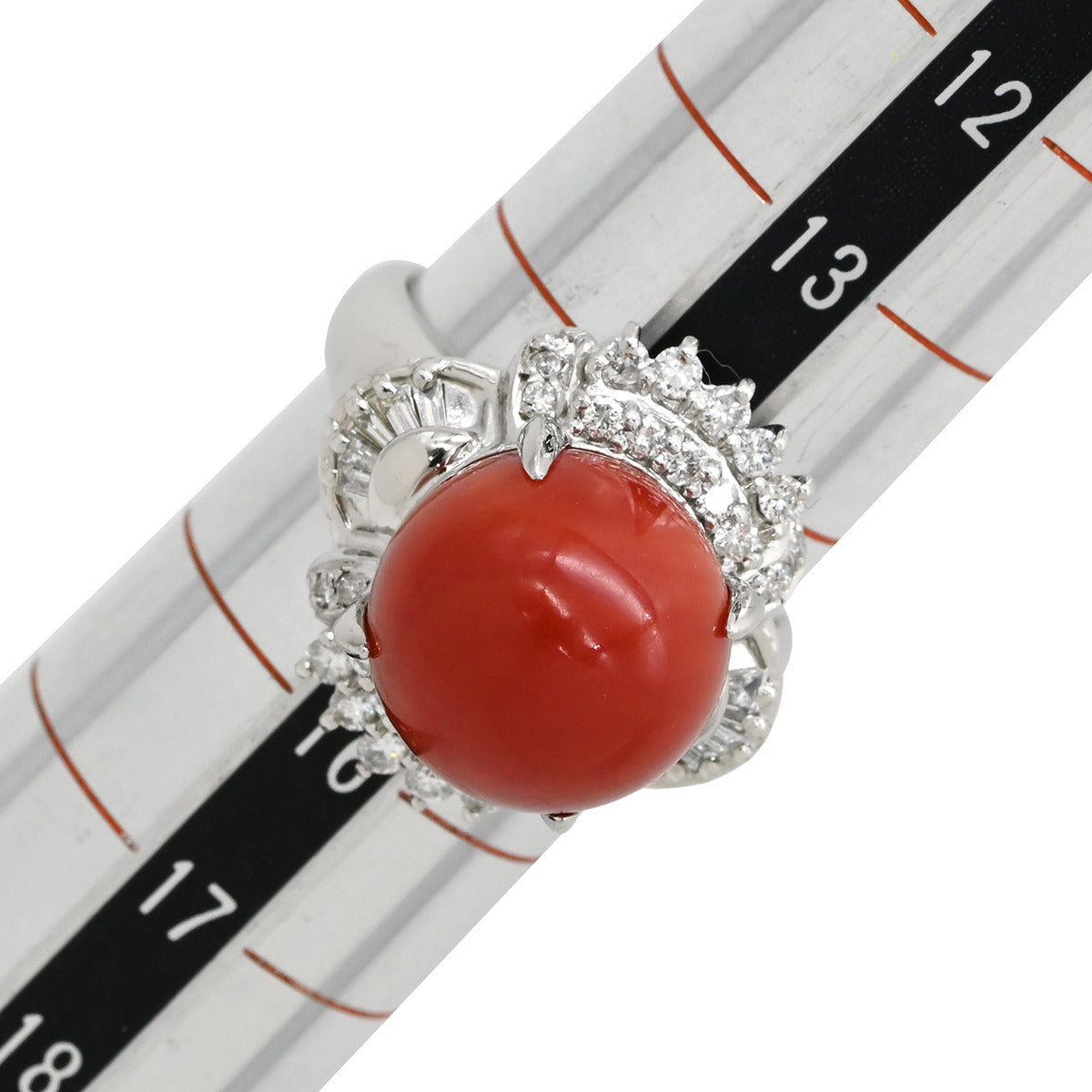ノンブランド NON BRAND 珊瑚 ダイヤリング プラチナシルバー リング 指輪 赤 サンゴ 14号