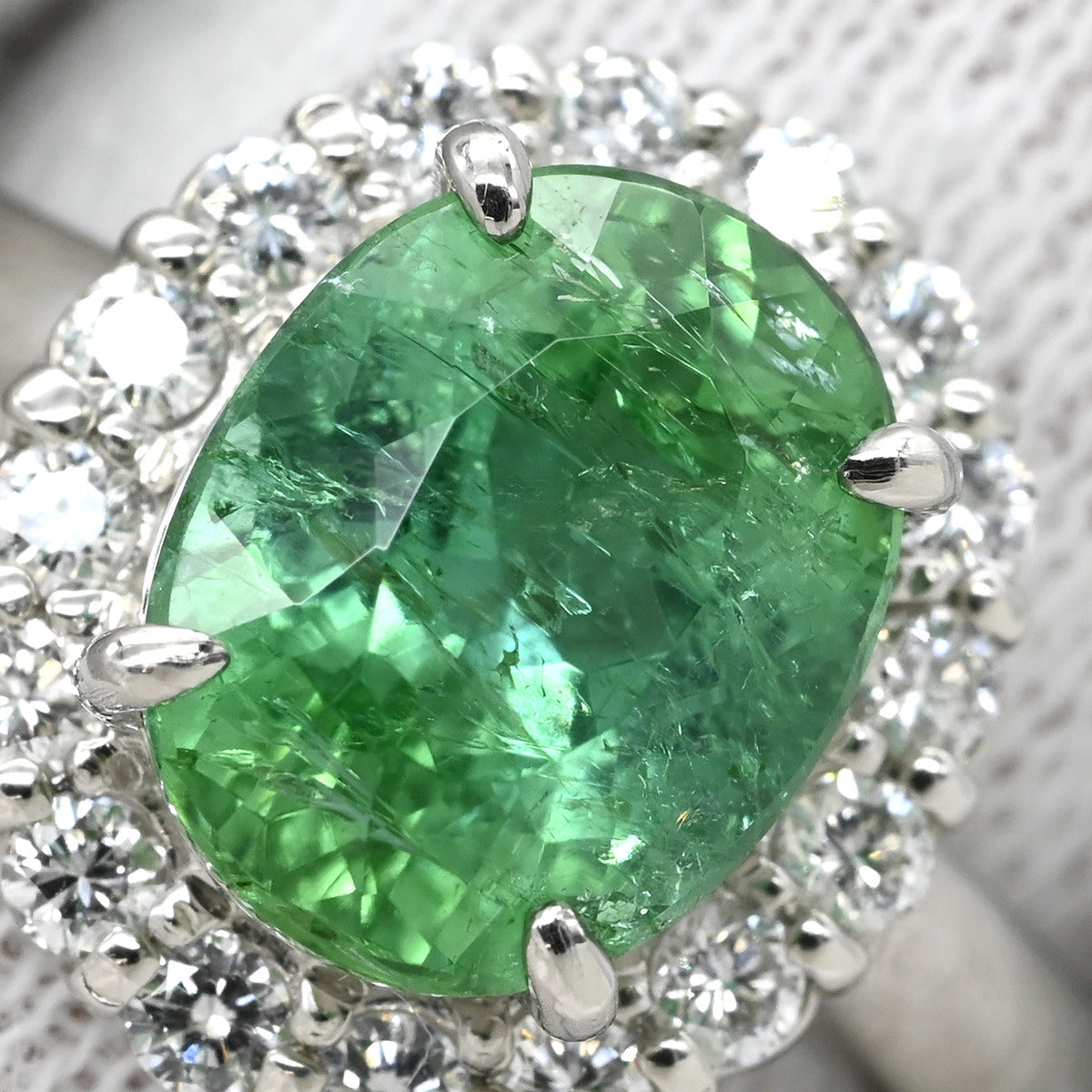 ノンブランド NON BRAND トルマリン2.43ct ダイヤモンド プラチナシルバー リング 指輪 薄緑 オーバルモディファイト ブリリアントカット 1石 14号