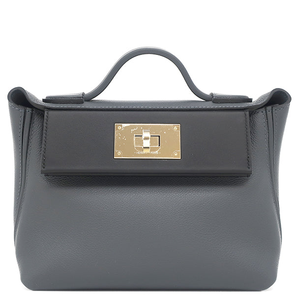 エルメス HERMES サック ヴァンキャトル 24/24 ミニ 21 グリミスティ×ブラック エバーカラー スイフト 2WAYバッグ シャンパンゴールド金具 黒 グレー ヴェルソ