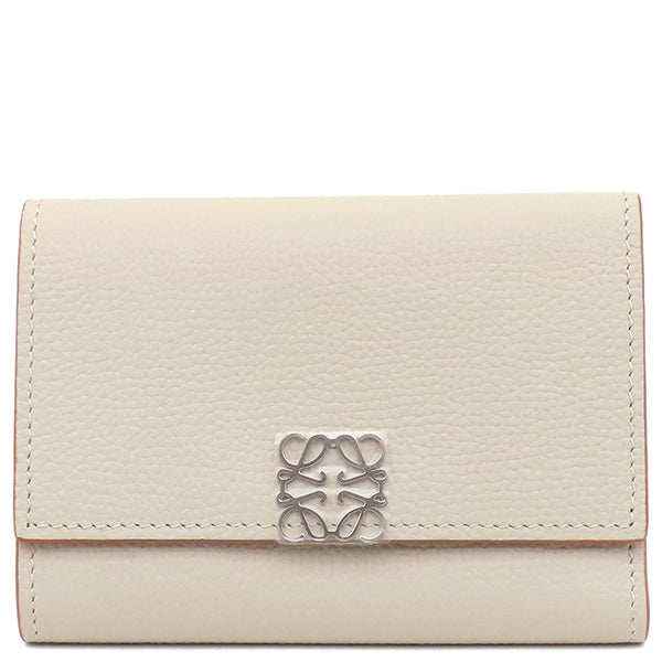 ロエベ LOEWE アナグラム バーティカル ウォレット C821S33X12 ライトゴースト ペブルグレインカーフ 三つ折り財布 シルバー金具 コンパクトウォレット
