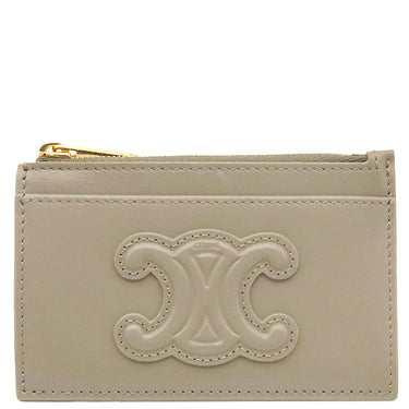 セリーヌ CELINE ジップ付きカードホルダー キュイル トリオンフ モダントープ シャイニーカーフスキン カードケース ゴールド金具 グレージュ フラグメントケース