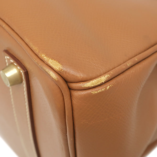エルメス HERMES バーキン35 ゴールド クシュベル ハンドバッグ ゴールド金具 茶