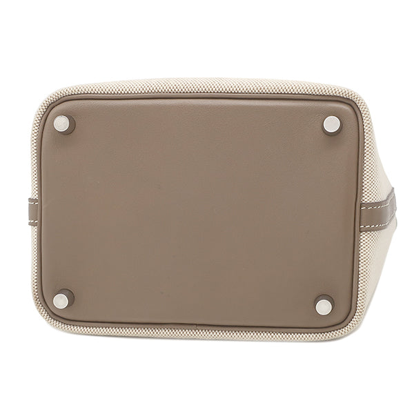エルメス HERMES ピコタン PM ナチュラル×エトゥープ トワルアッシュ スイフト ハンドバッグ シルバー金具 ベージュ