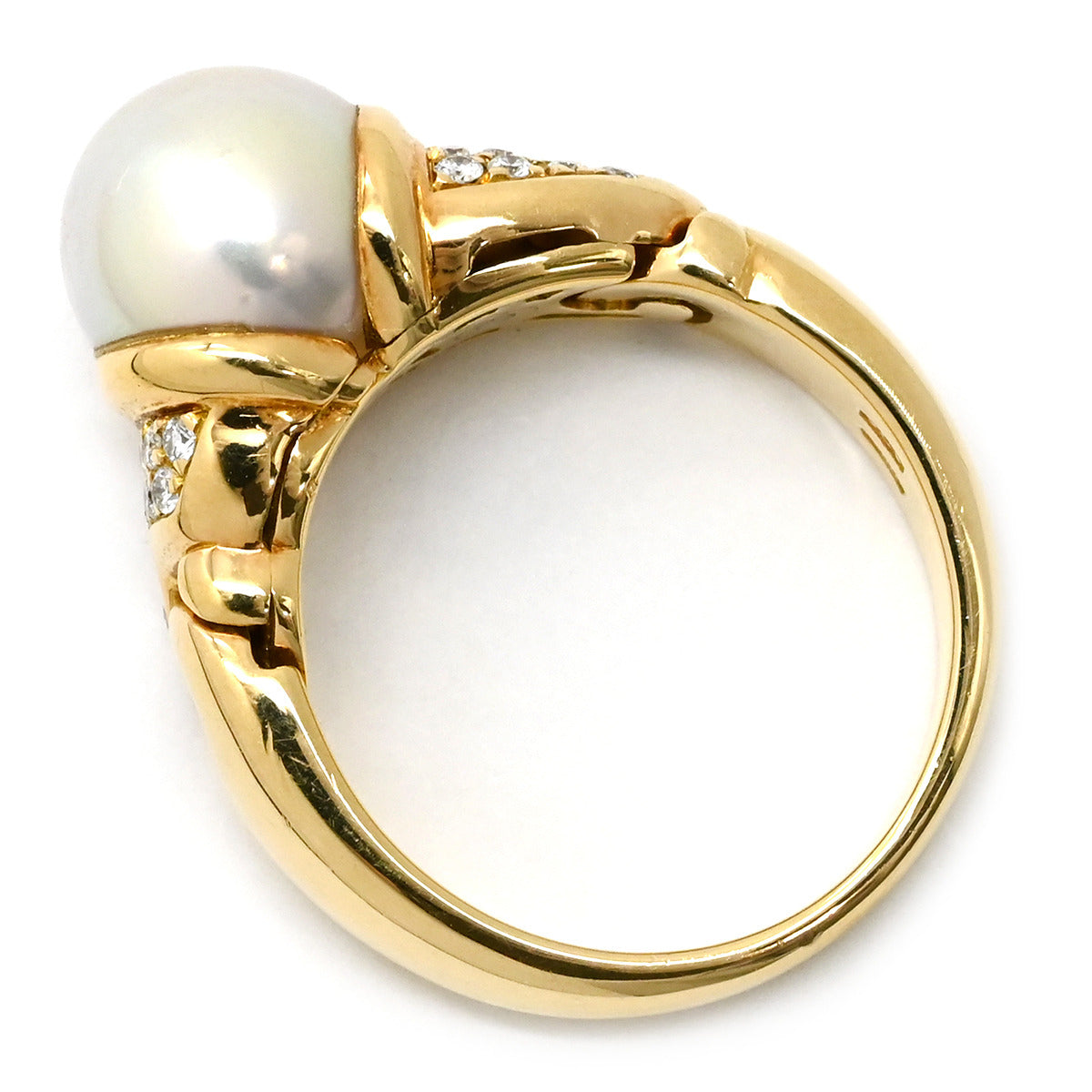ブルガリ BVLGARI ガンチョリング イエローゴールド K18YG ダイヤモンド パール リング 指輪 BVLGARI Au750 YG 18K 18金 ダイヤ アコヤパール 1P 9.5号