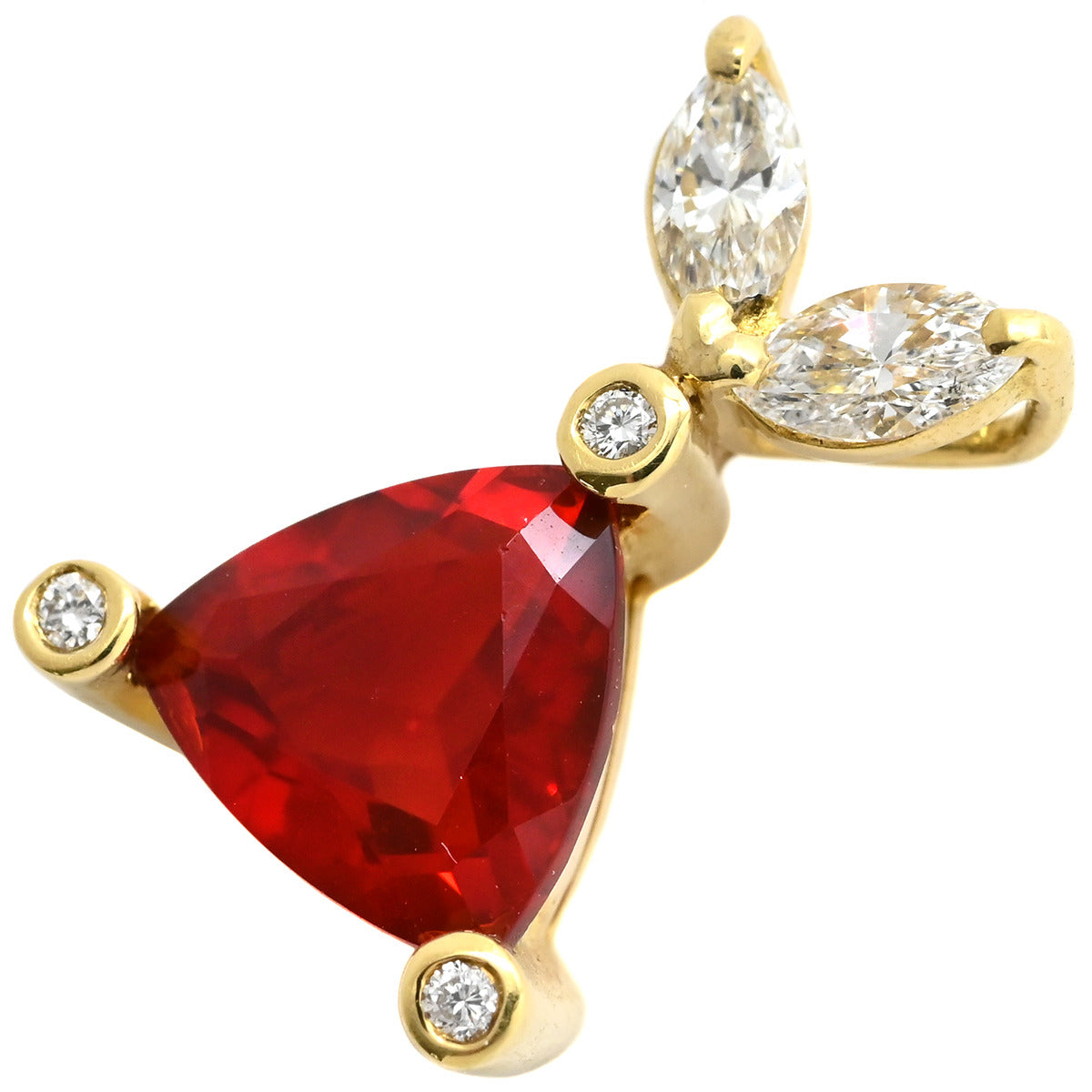 ノンブランド NON BRAND ファイアオパール ダイヤ レッド×イエローゴールド ペンダントトップ 赤 ネックレストップ トリリアント マーキス うさぎモチーフ