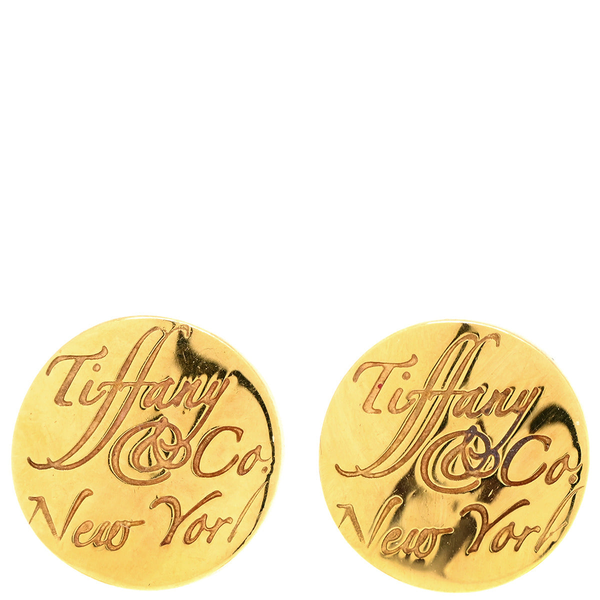 ティファニー Tiffany & Co ノーツ ラウンド ロゴ ニューヨーク イエローゴールド K18YG ピアス 750 18K YG キャッチ社外品