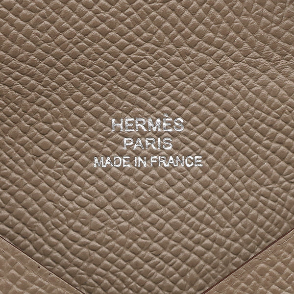 エルメス HERMES カルヴィ エトゥープ ヴォーエプソン カードケース シルバー金具 新品 未使用 グレージュ