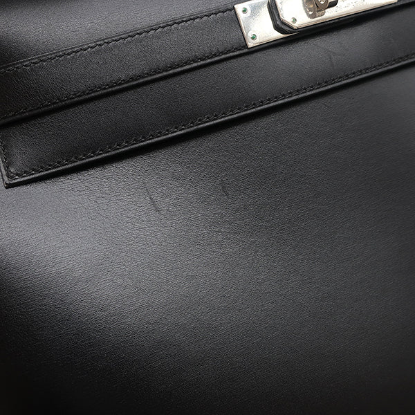 エルメス HERMES ケリー 32 外縫い ブラック ボックスカーフ 2WAYバッグ シルバー金具 黒 ハンドバッグ ショルダー