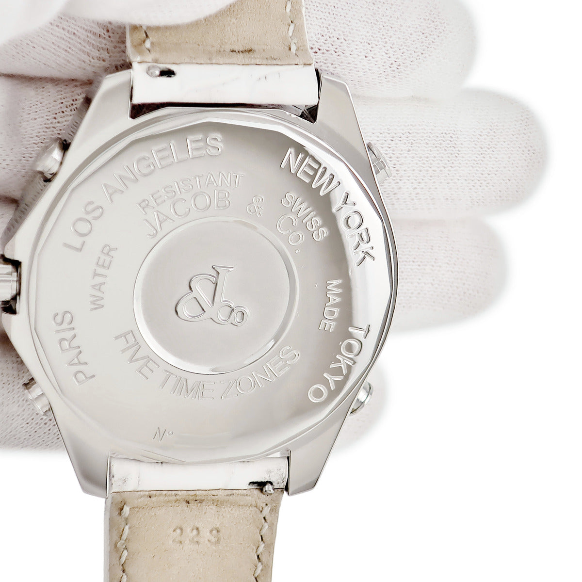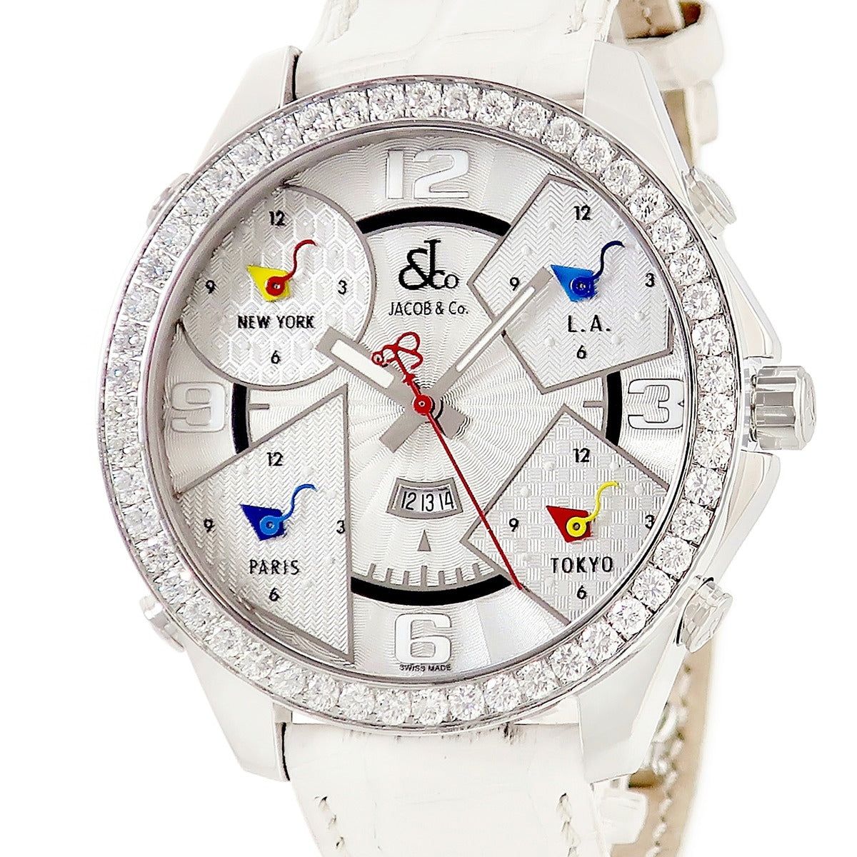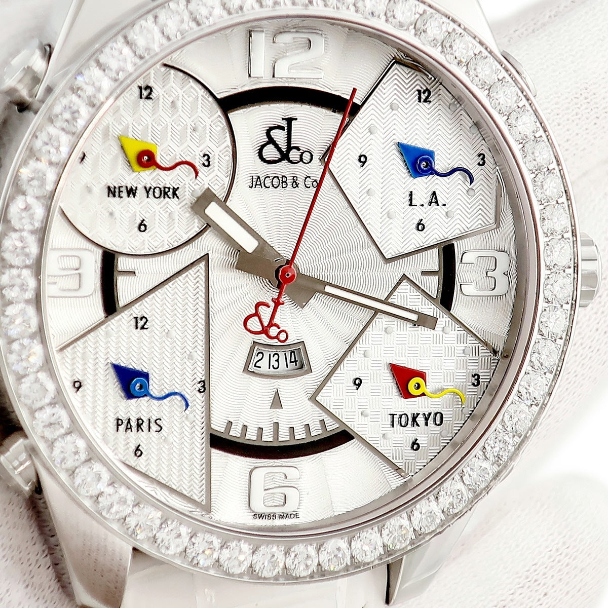 ジェイコブ JACOB ファイブタイムゾーン JC-3 クオーツ メンズ 純正ダイヤ シルバー GMT デイト アラビア ギョウシェ