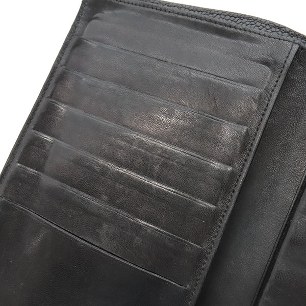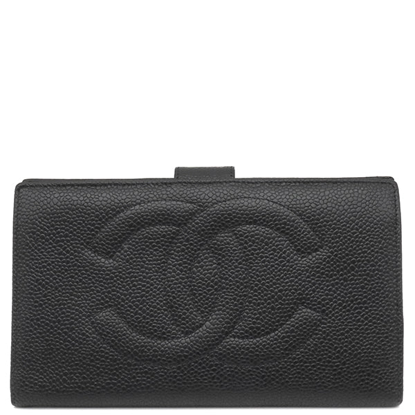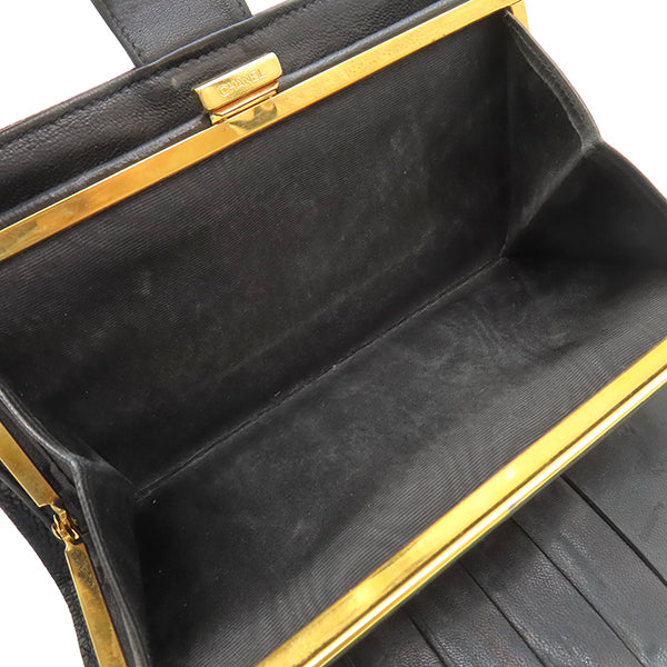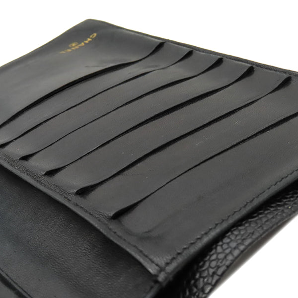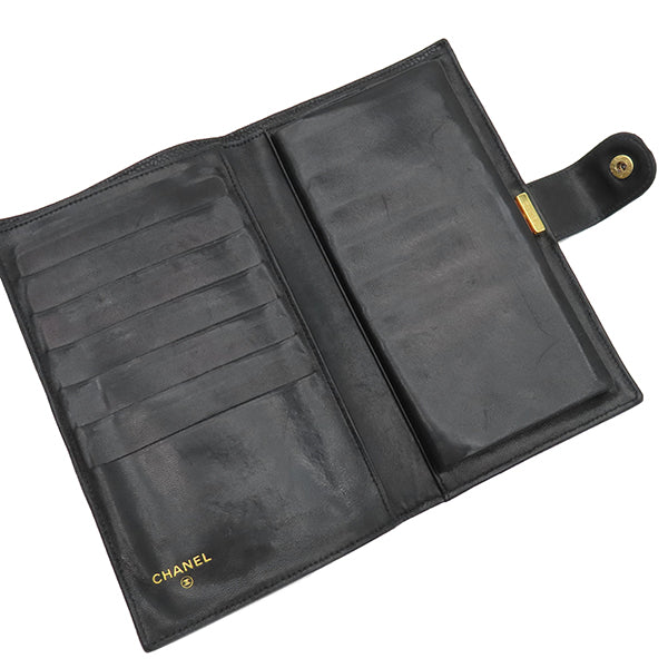 シャネル CHANEL ココマーク がま口 A01429 黒 ラムスキン キャビアスキン 長財布 ゴールド金具 黒 二つ折り