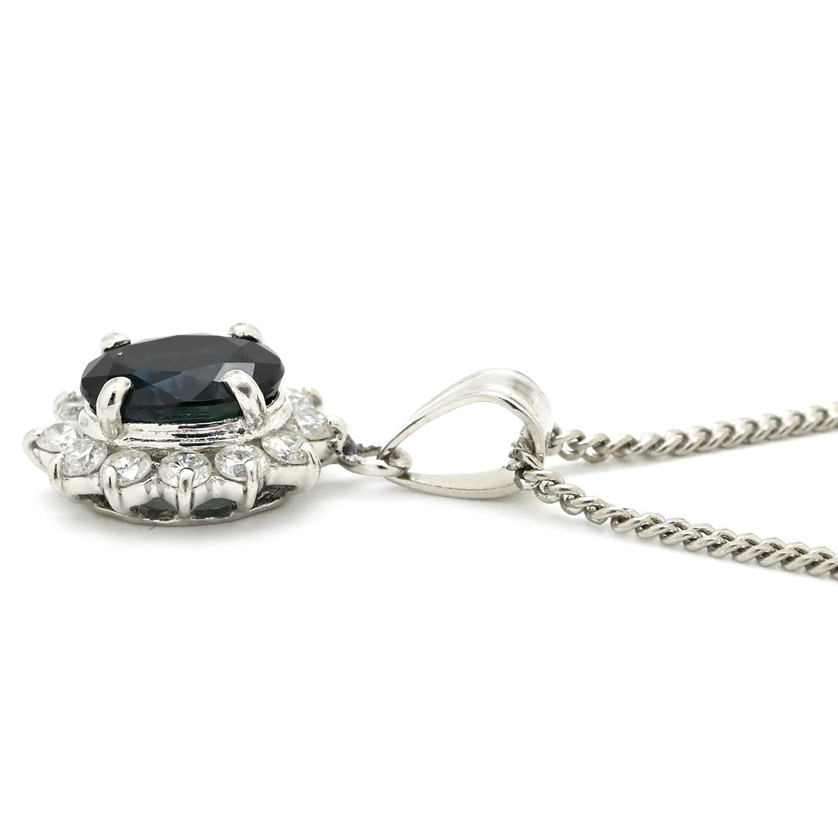 ノンブランド NON BRAND サファイア ダイヤモンド プラチナシルバー ネックレス Pt850 ドロップ ペンダント ダイヤ 青 オーバル ブルーサファイア