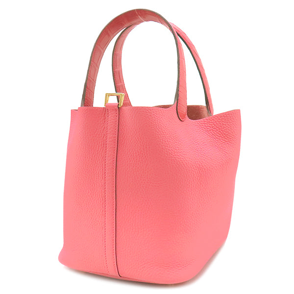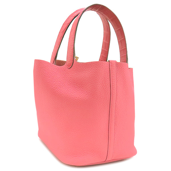 エルメス HERMES ピコタンロックMM タッチ ローズアザレ トリヨンクレマンス アリゲーター ハンドバッグ ゴールド金具 クロコ