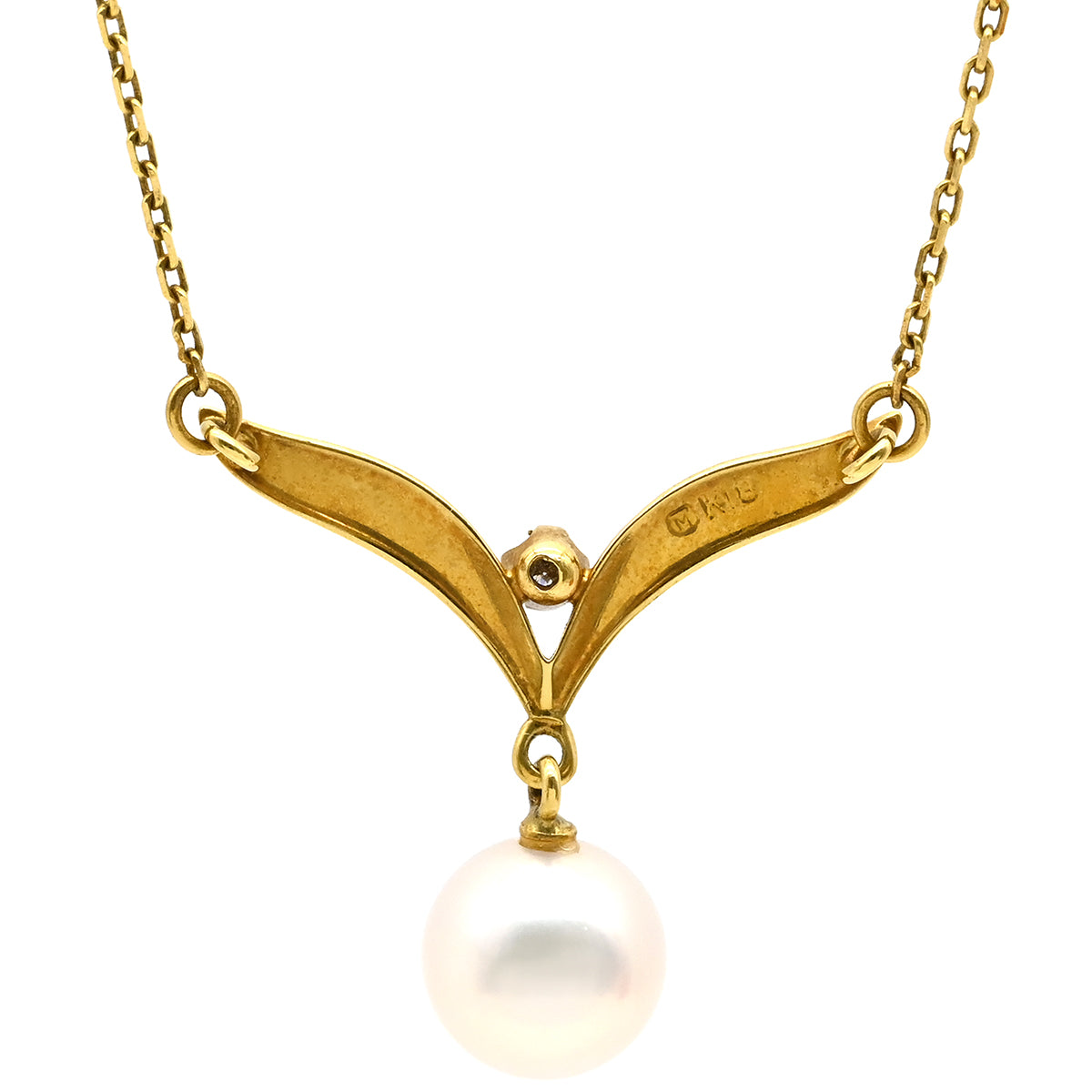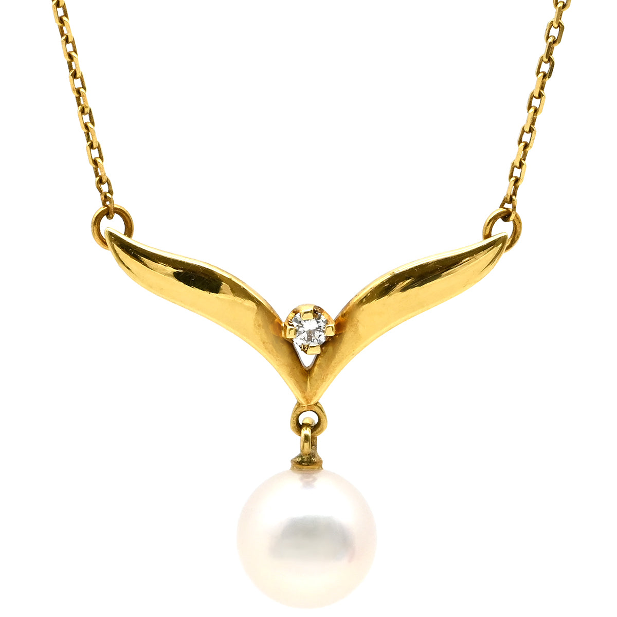 ミキモト MIKIMOTO パールネックレス イエローゴールド×パールホワイト K18YG パール ダイヤモンド ネックレス MIKIMOTO 真珠 18K 18金 Au750 ダイヤ