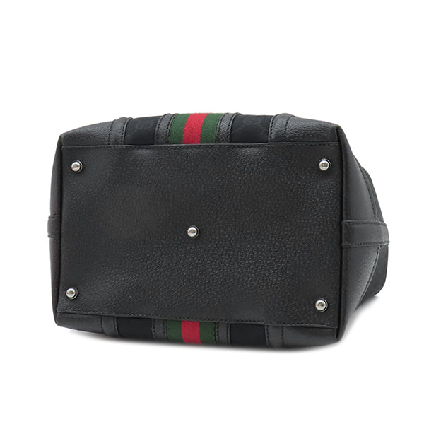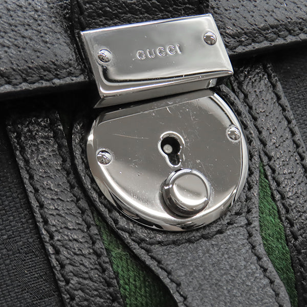 グッチ GUCCI ドクターズバッグ 146002 ブラック GGキャンバス レザー ハンドバッグ シルバー金具 黒 シェリーライン スクエア型