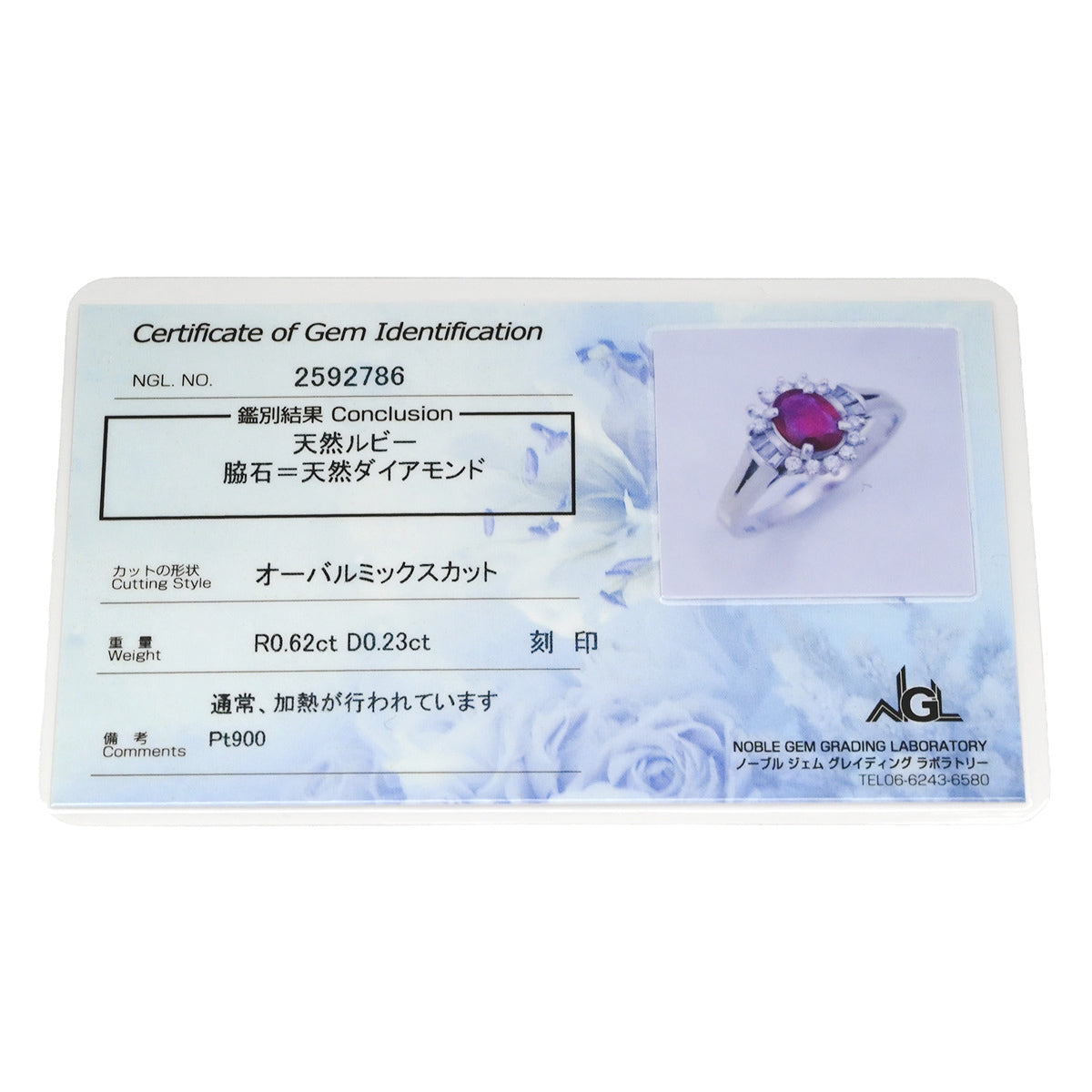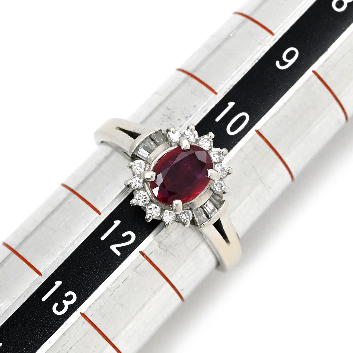 ノンブランド NON BRAND ルビー 062ct ダイヤリング プラチナシルバー リング 指輪 レッド 赤 1石 オーバルミックスカット ダイヤモンド 指輪 11号