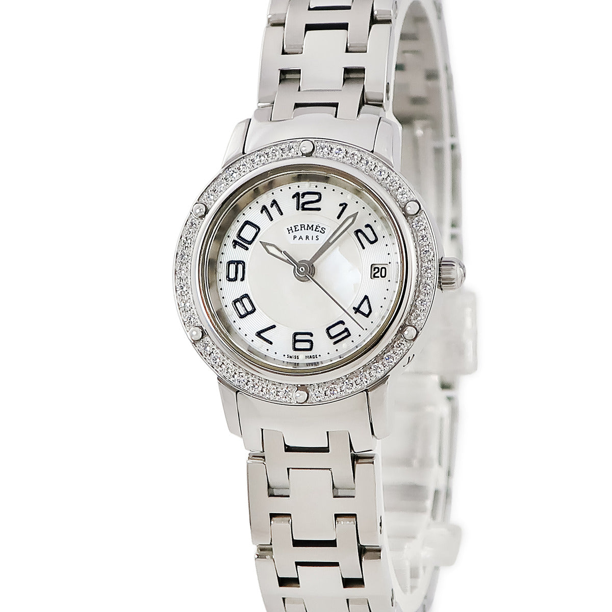 エルメス HERMES クリッパー ナクレ CP1.230 クオーツ レディース 純正ダイヤ シェル デイト アラビア