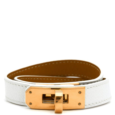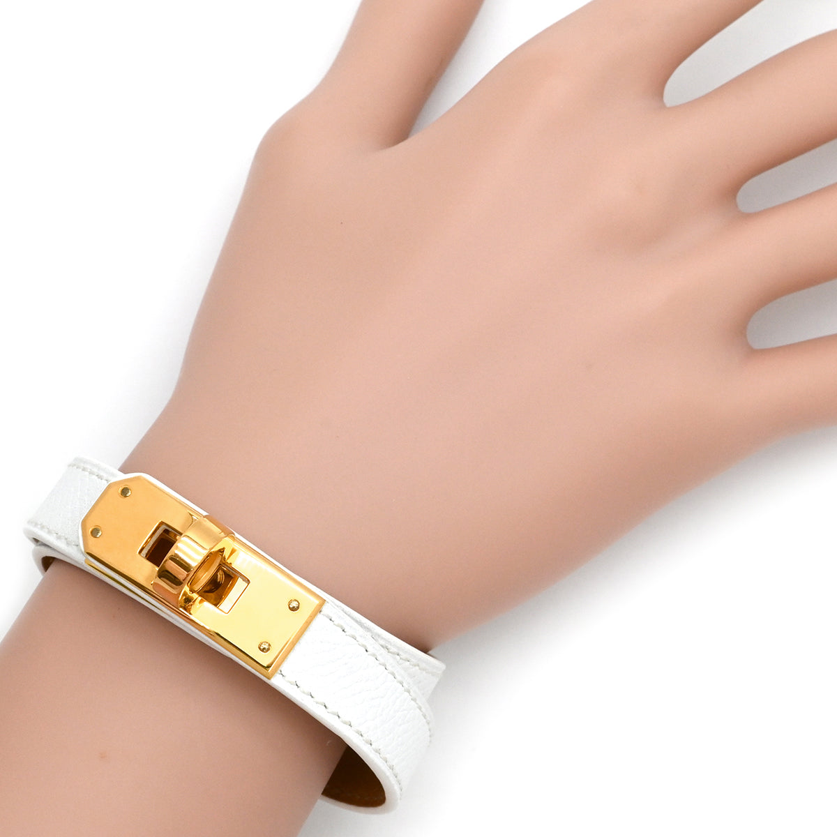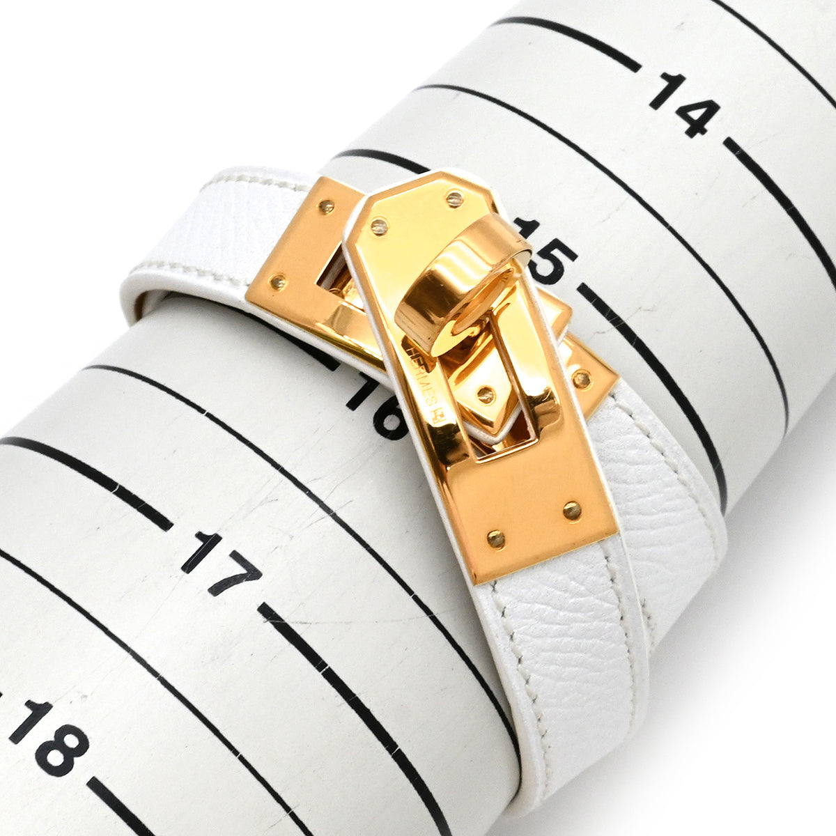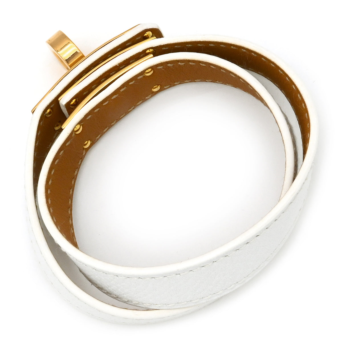エルメス HERMES ケリードゥブルトゥール ホワイトxゴールド ヴォーエプソン GP 14037 ブレスレット 白 茶
