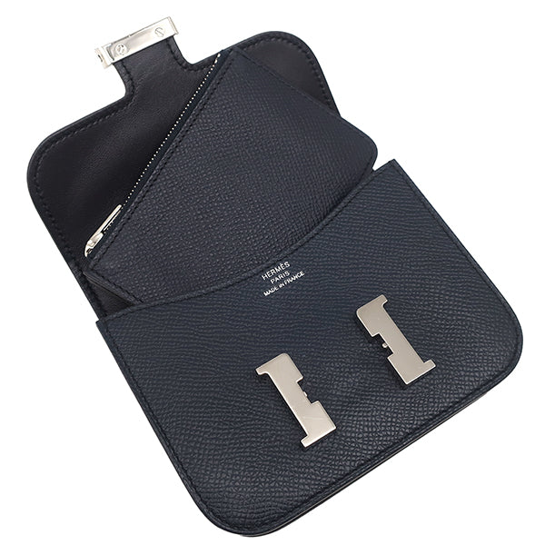 エルメス HERMES コンスタンス スリム ウォレット ブルーインディゴ ヴォーエプソン 二つ折り財布 シルバー金具 紺