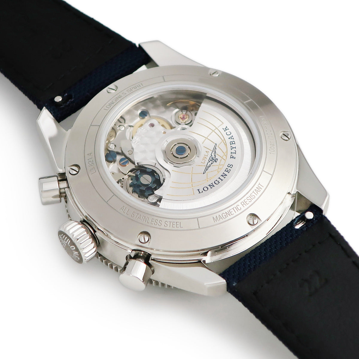 ロンジン LONGINES スピリット フライバック L3.821.4.93.2 自動巻き メンズ 新品同様 ブルー サンレイ アラビア クロノグラフ