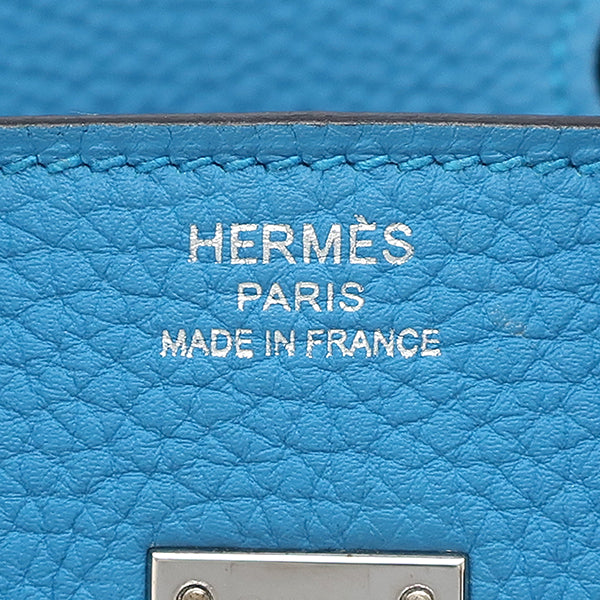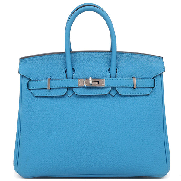 エルメス HERMES バーキン25 ブルーザンジバル トゴ ハンドバッグ シルバー金具 青