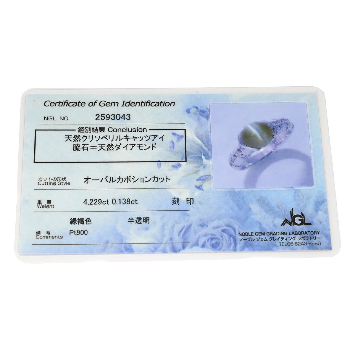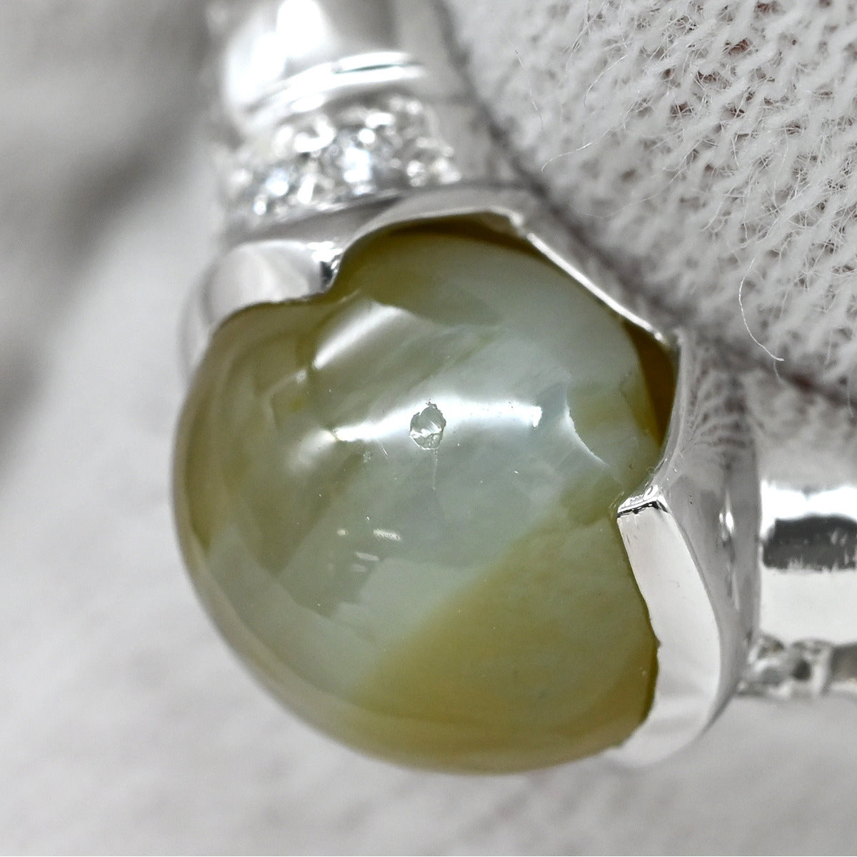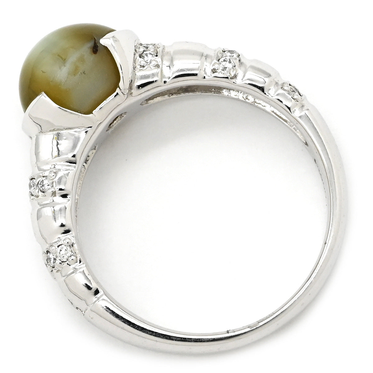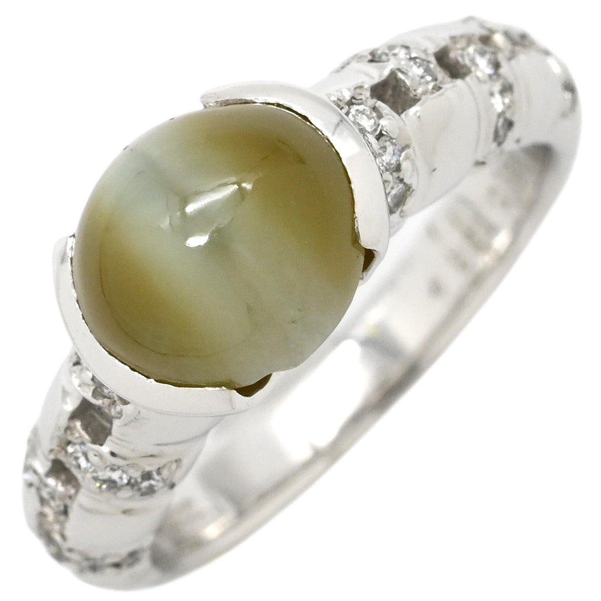 ノンブランド NON BRAND クリソベリル キャッツアイ ダイヤ リング プラチナシルバー リング 指輪 猫目石 4.229ctct PT ダイヤモンド オーバル 11号