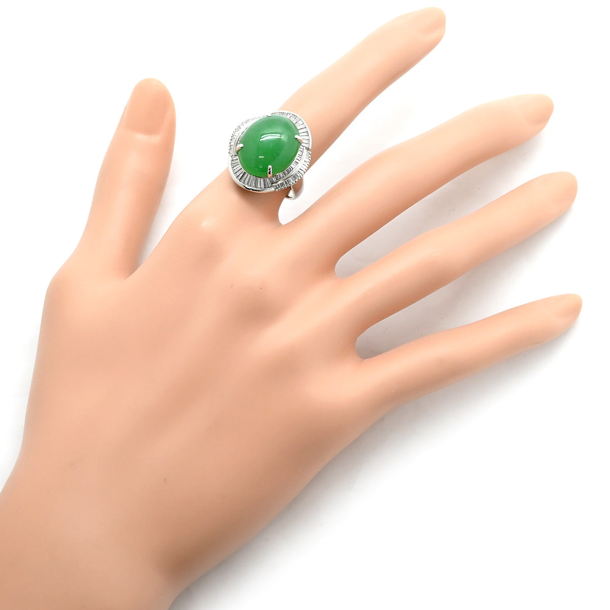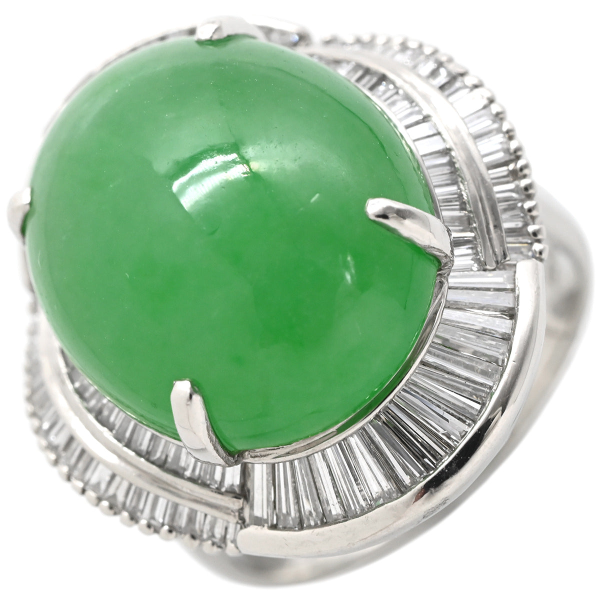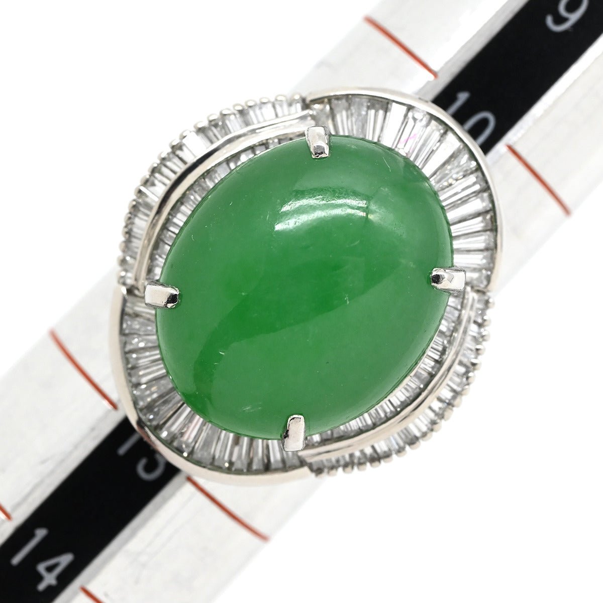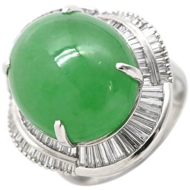 ノンブランド NON BRAND ヒスイ 12.07ct ダイヤモンド プラチナシルバー リング 指輪 緑 グリーン 翡翠 ひすい ジェダイト オーバルカボションカット 11号