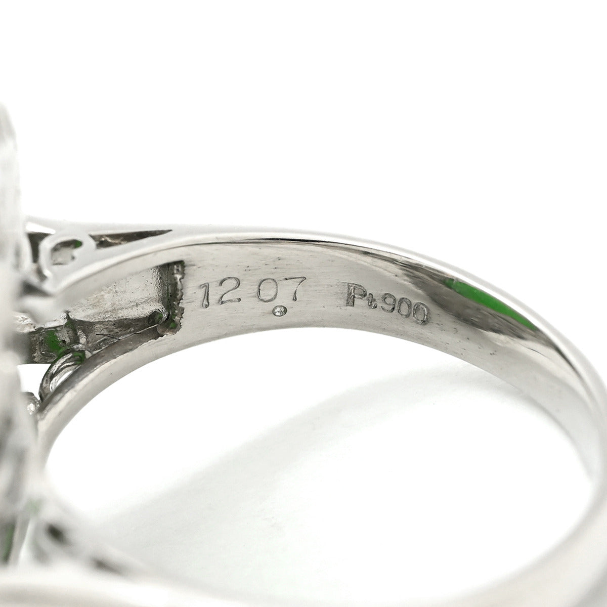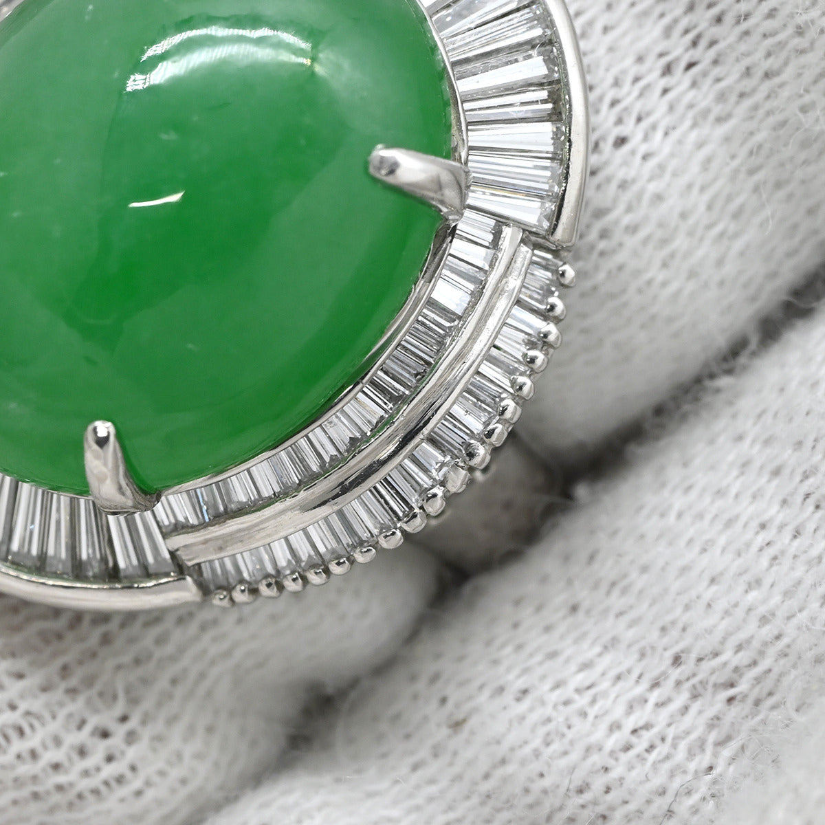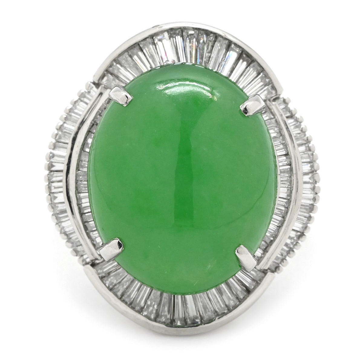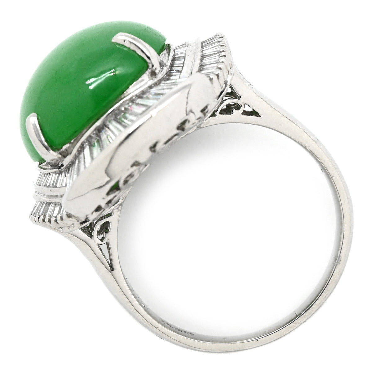 ノンブランド NON BRAND ヒスイ 12.07ct ダイヤモンド プラチナシルバー リング 指輪 緑 グリーン 翡翠 ひすい ジェダイト オーバルカボションカット 11号