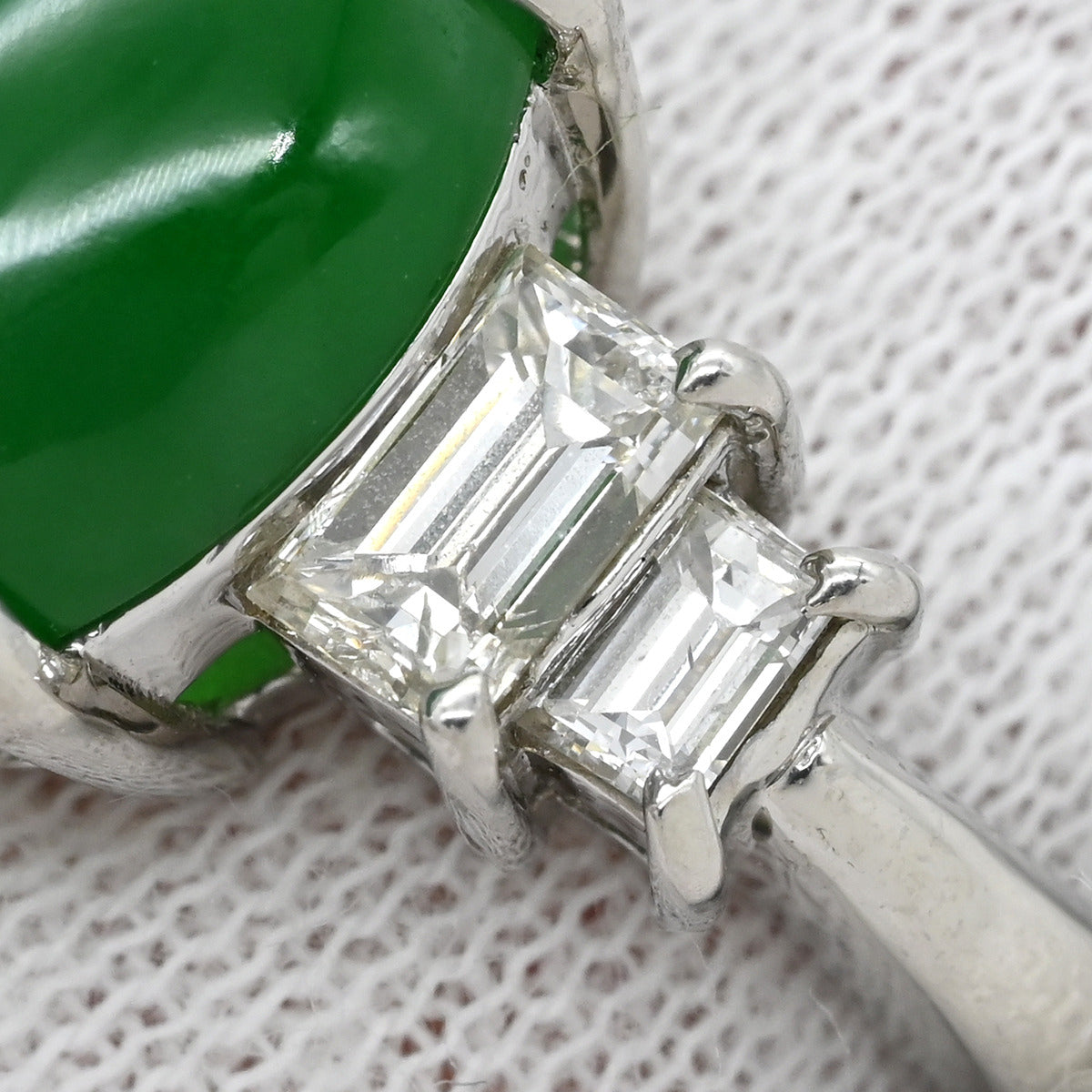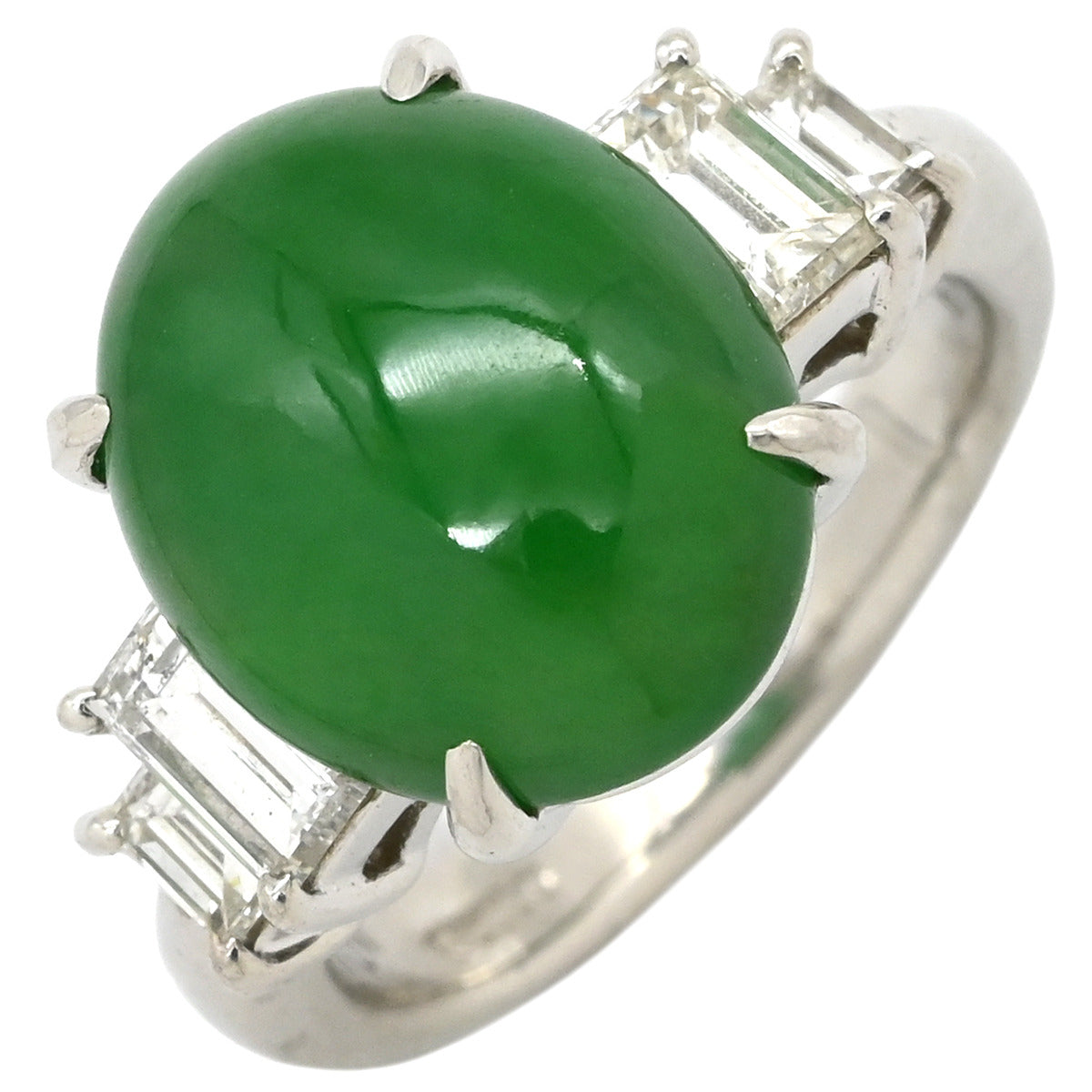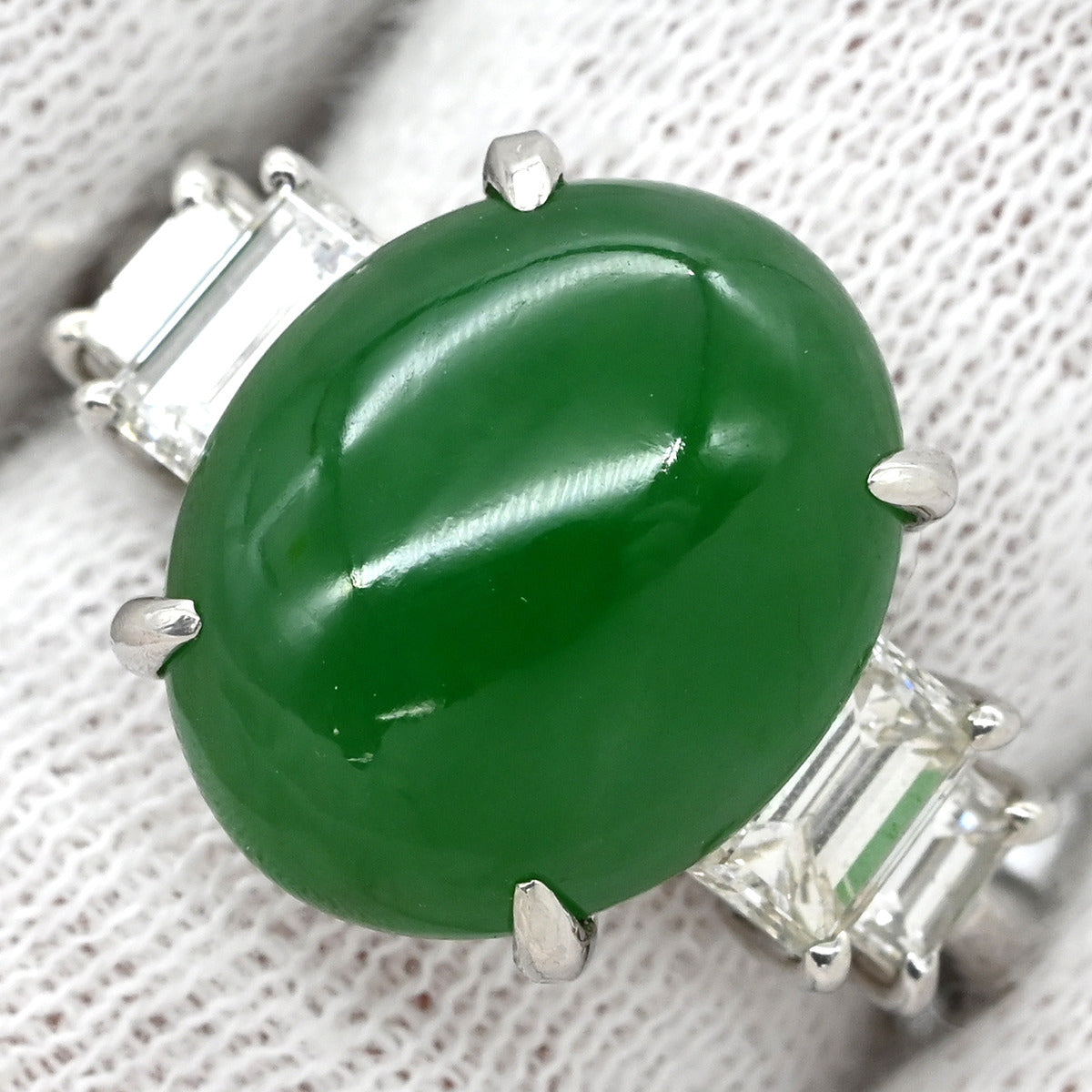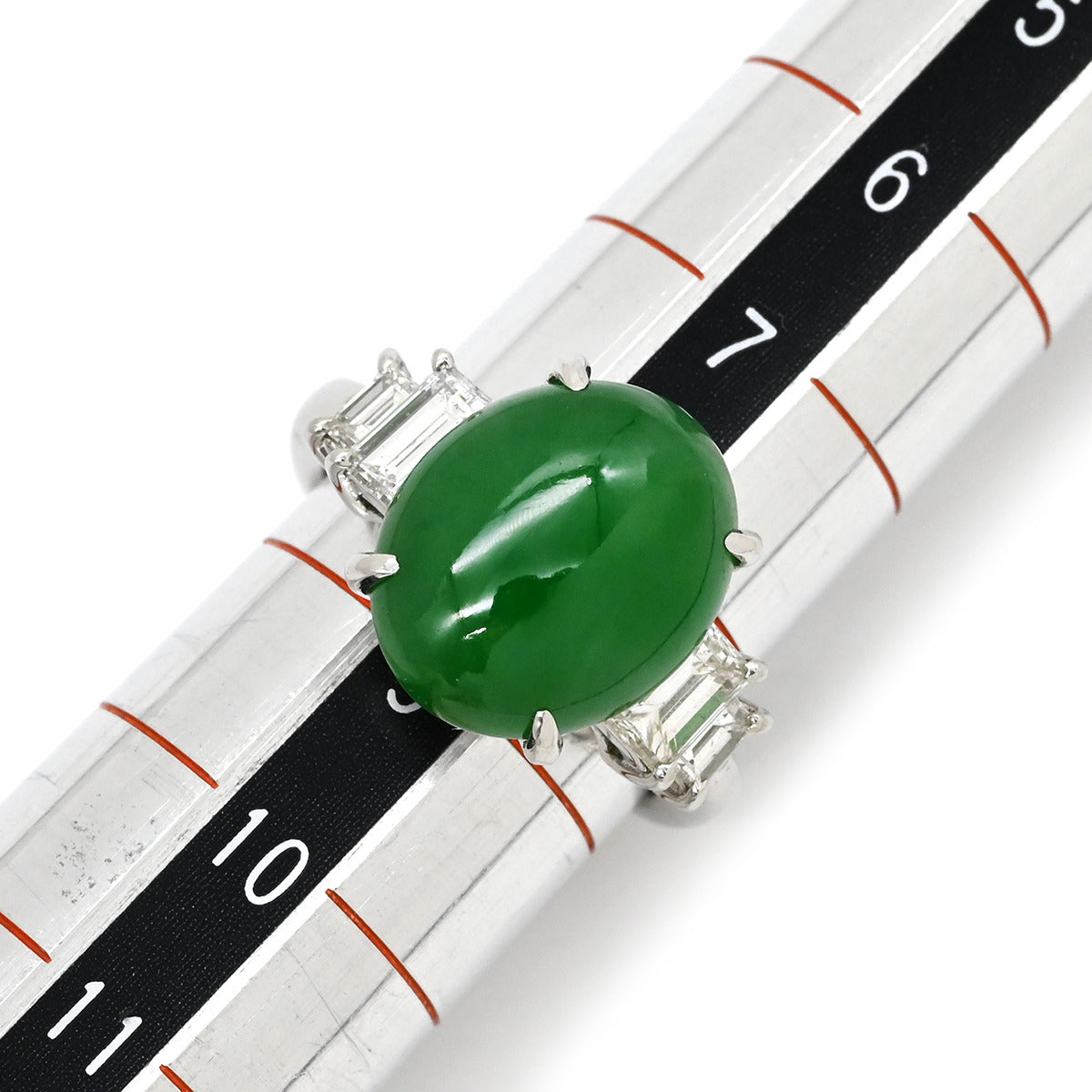 ノンブランド NON BRAND ヒスイ 5.40ct ダイヤモンド プラチナシルバー リング 指輪 緑 グリーン 翡翠 ひすい ジェダイト プラチナ900 8号
