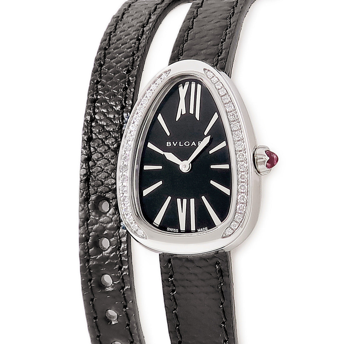 ブルガリ BVLGARI セルペンティ 102921 クオーツ レディース 純正ダイヤ ダブルスパイラル ブラック 黒 バー ローマン