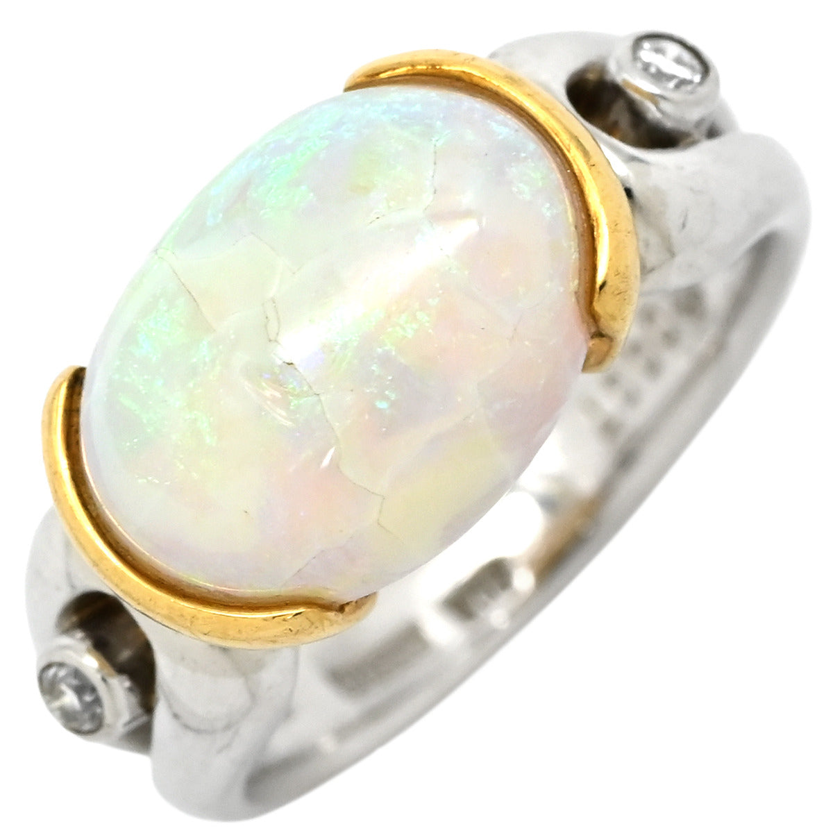 ノンブランド NON BRAND オパール ダイヤリング プラチナシルバー リング 指輪 コンビリング 13号