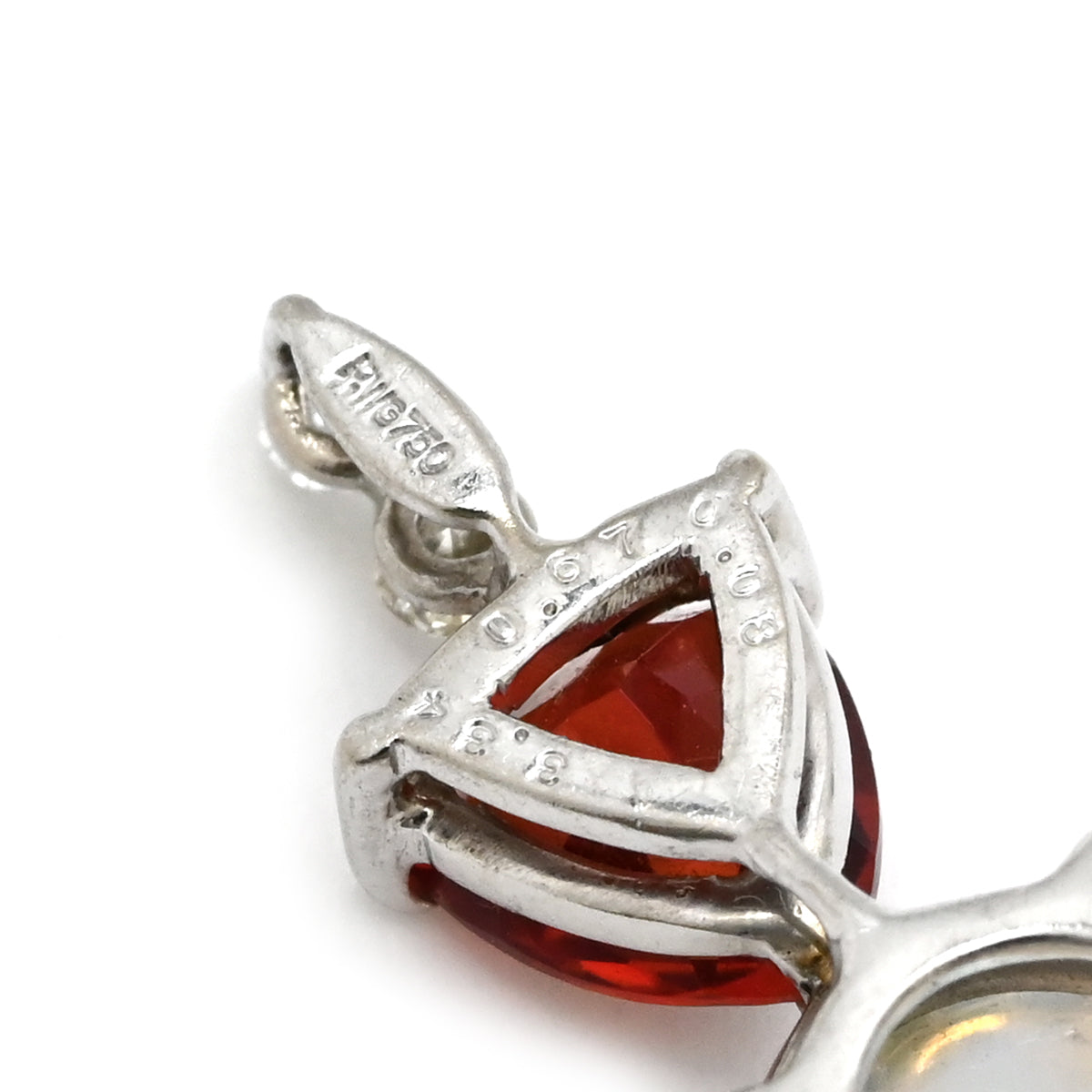 ノンブランド NON BRAND ラブラドライト アンデシン ダイヤ ホワイトゴールド ペンダントトップ レッド オーバルカボションカット ネックレストップ 18K 18金